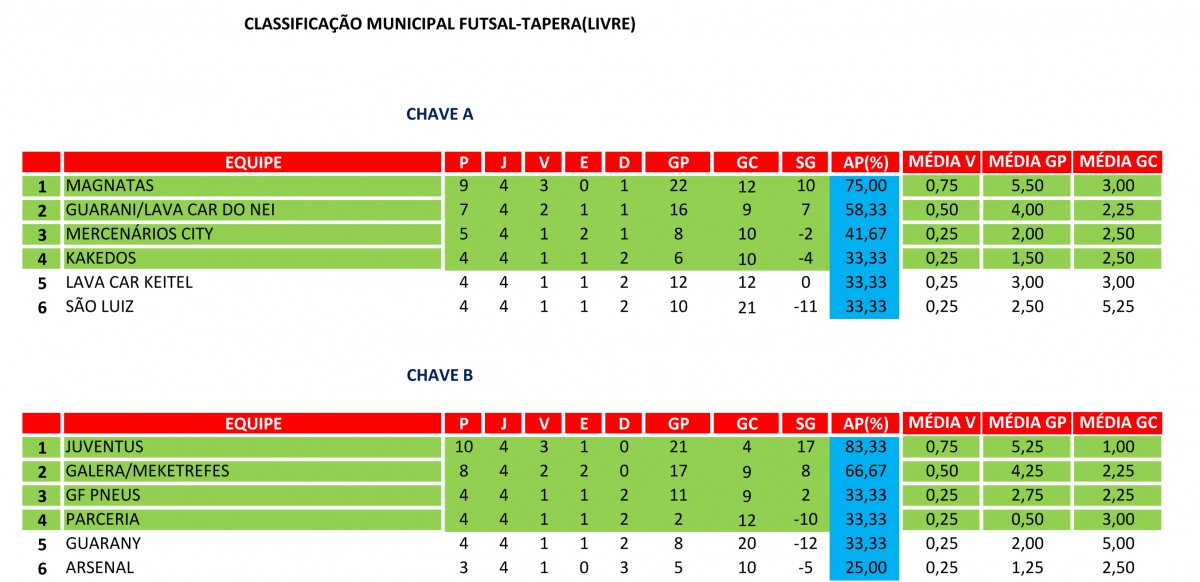 Na sexta-feira, 27/07, a categoria livre define os quatro classificados da Chave A. Os jogos serão entre São Luiz X Mercenários City; Lava Car Keitel X Guarani /Lava Car Do Nei; Kakedos X Magnatas. Confira na tabela a classificação geral das equipes.