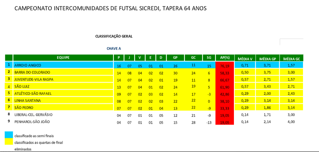 Concluída a primeira fase, a equipe classificada em 1º lugar vai diretamente para as semifinais, e as outras 6 equipes disputam as quartas-de-final. Confira a classificação, faltando ainda uma rodada:
