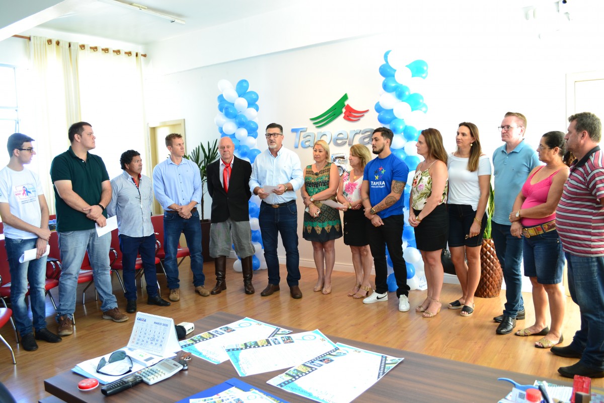Foi lançada oficialmente na manhã desta quinta-feira, 06/02, a programação de comemoração do aniversário de 65 anos do Município de Tapera. O evento aconteceu no gabinete do Prefeito Municipal Volmar Kuhn e contou com a presença da Primeira Dama do Município Marilei Boghetti Kuhn, do Vice-Prefeito Jorge Quadros, da Secretária de Educação Maria Regina Bósio Salvadori, do Presidente da Câmara Municipal Jacson Lauxen, além de demais secretários, diretores, e da impressa em geral.