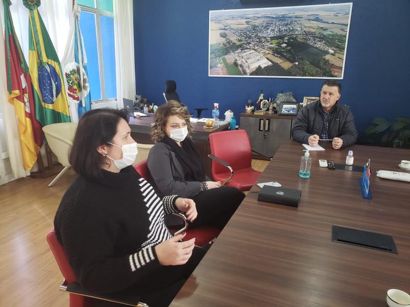 Nesta última sexta feira, dia 24, o Prefeito, Volmar Helmut Kuhn, recebeu em seu gabinete a Cibele Serafini da Silva, proprietária da empresa Serafini Engenharia, juntamente com a Engenheira Civil, Eliara Riasyk Porto, para discussão de estudo técnico que será feito em algumas vias do município de Tapera.