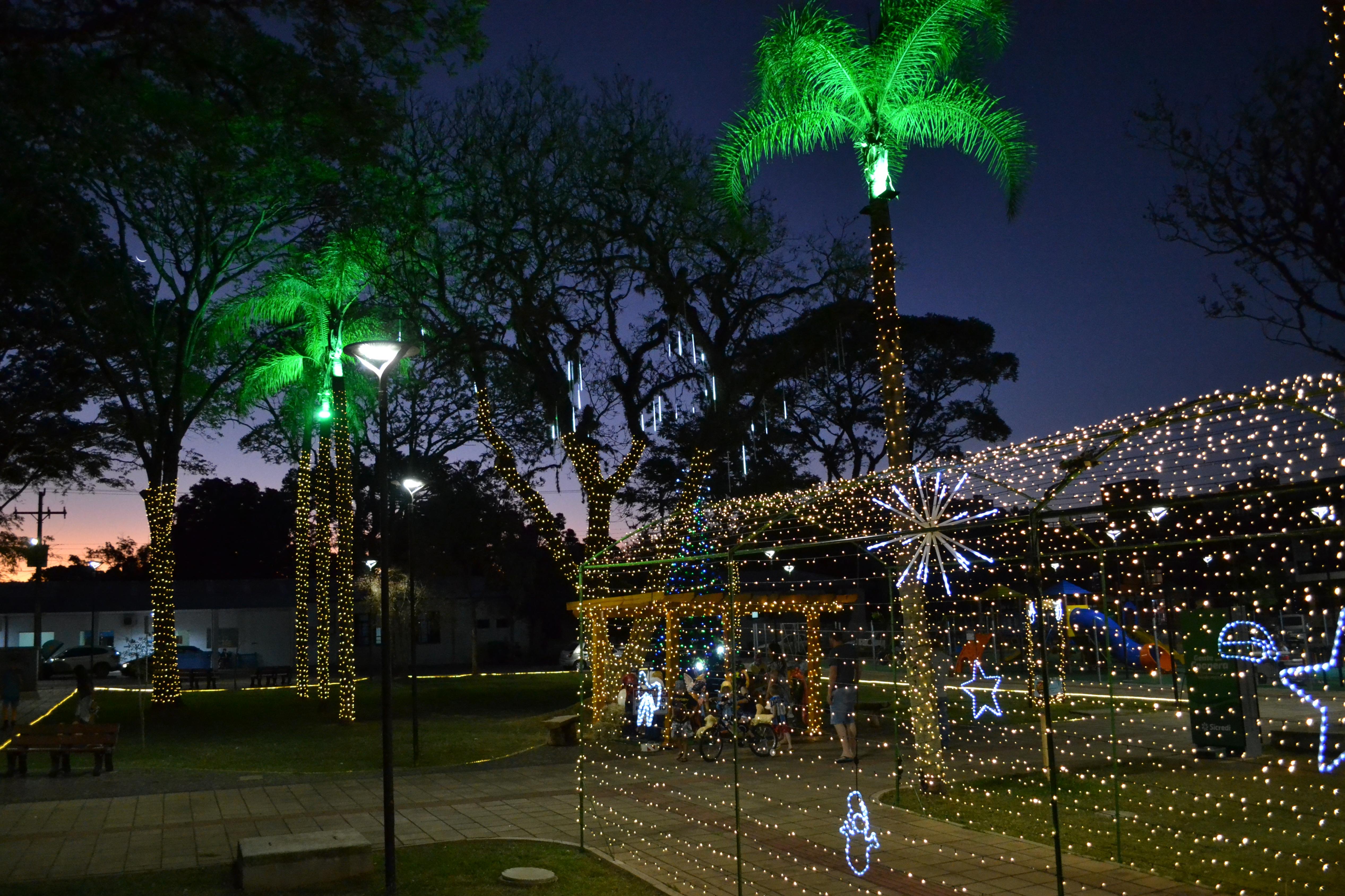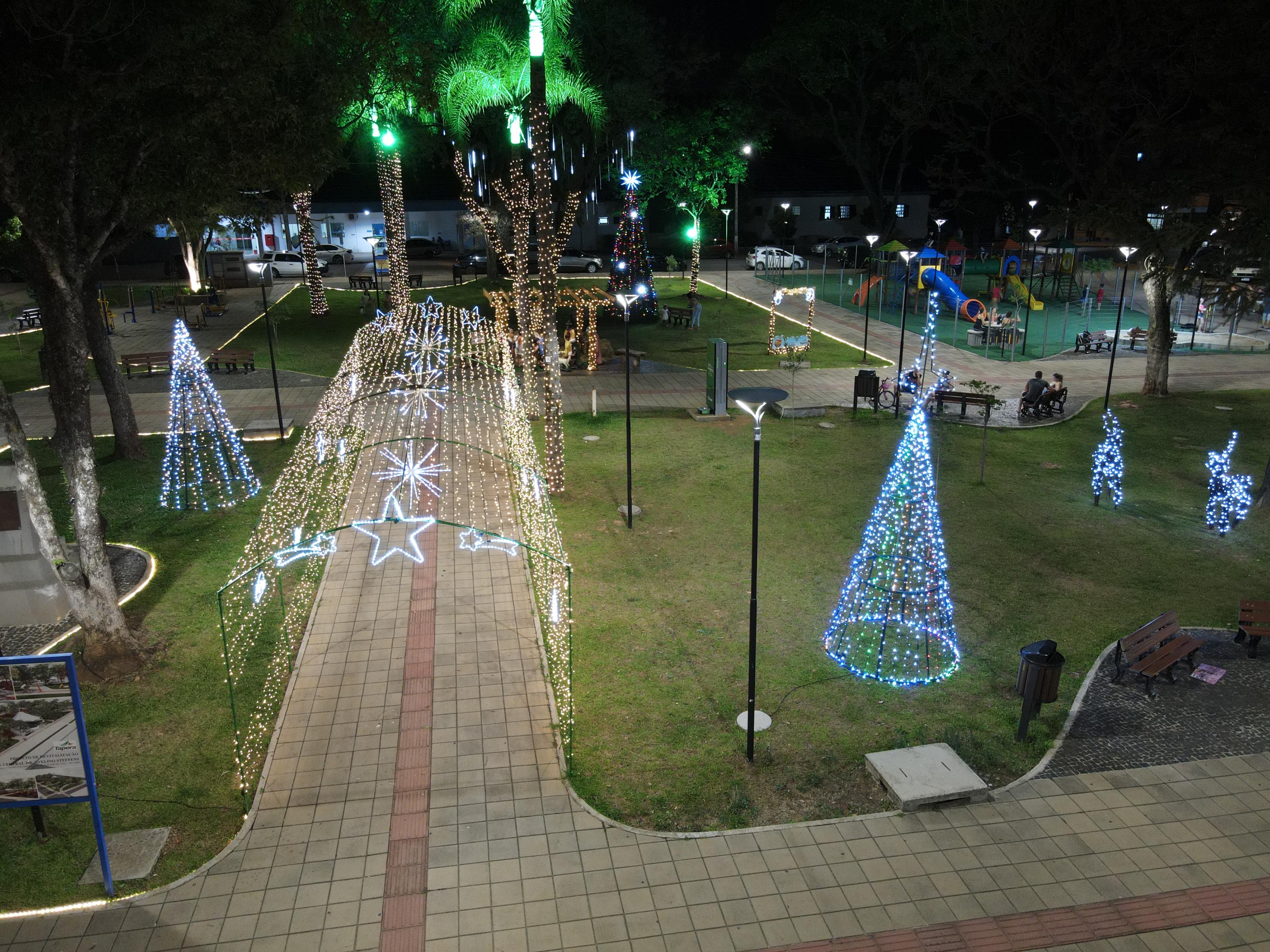 Consegue-se avistar de longe as luzes que iluminam de forma colorida os coqueiros da praça, um show de cores que simboliza que o Natal se aproxima. As decorações natalinas exaltaram as belezas da nossa praça, encantando crianças e adultos que a noite passeiam pelo local. A Praça Dr. Avelino Steffens que está em sua fase final de revitalização atraí muitas pessoas do município e também visitantes, que aproveitam o belo espaço verde para momentos de lazer em família e amigos.