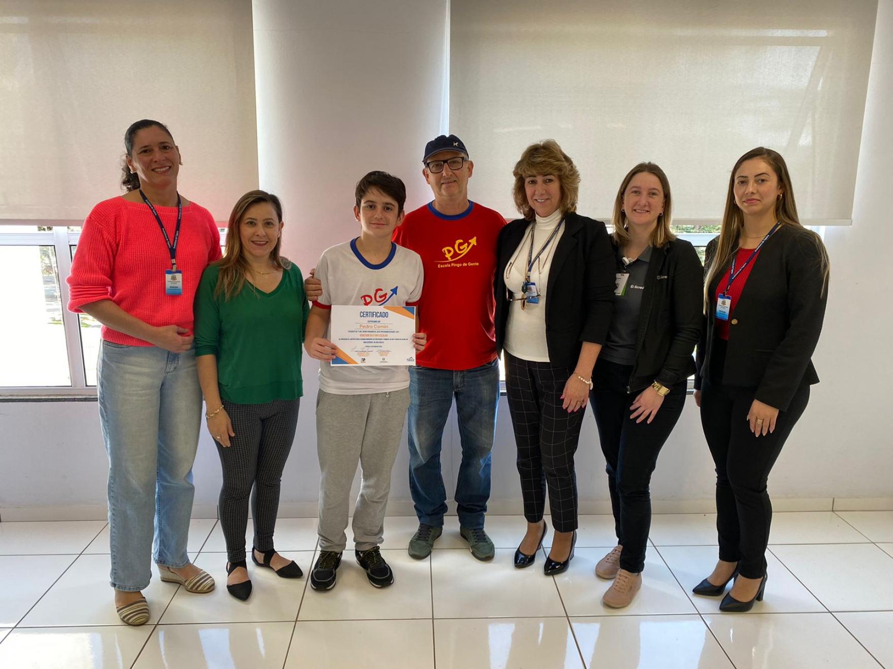 Hoje, 23/05, às 13h30min no Centro de Eventos, reuniu-se as escolas e estudantes que participaram do Concurso e venceram a etapa escolar para a logotipo a ser instituída na Semana Municipal de Prevenção e Combate ao Uso e Abuso de Álcool na Adolescência e na Vida Adulta. Sendo estes: Joana Tariga Florêncio – EEEM Dionísio Lothário Chassot Pedro Comin – CE Preparando Gerações Paula Klassmann – IEE Nossa Senhora Imaculada Gabriela Rodrigues Vieira – EMEF Francisca Cerutti Andressa Rosati da Rosa – EMEF Presidente Costa e Silva Andressa de Matos Weizenmann – EMEF João Batista Mocelin Na etapa Municipal, a comissão seguiu o regulamento e os critérios de avaliação, conjuntamente, e a ganhadora foi a estudante Joana Tariga Florêncio, estudante da Escola Estadual Dionísio Lothário Chassot, da turma do 9º ano Ensino Fundamental e o professor orientador deste trabalho foi José Anildo Brum. Parabéns as escolas e estudantes que envolveram-se nesta atividade tão significativa em prol de uma sociedade melhor e mais saudável.