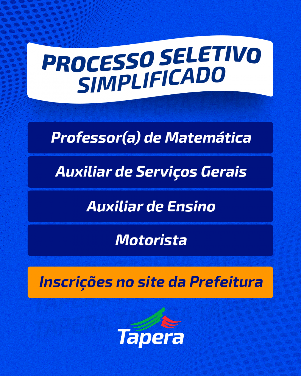 Inscrições abertas para os Processos Seletivos Simplificados de Professor(a) de Matemática, Auxiliar de Serviços Gerais, Auxiliar de Ensino e Motorista.