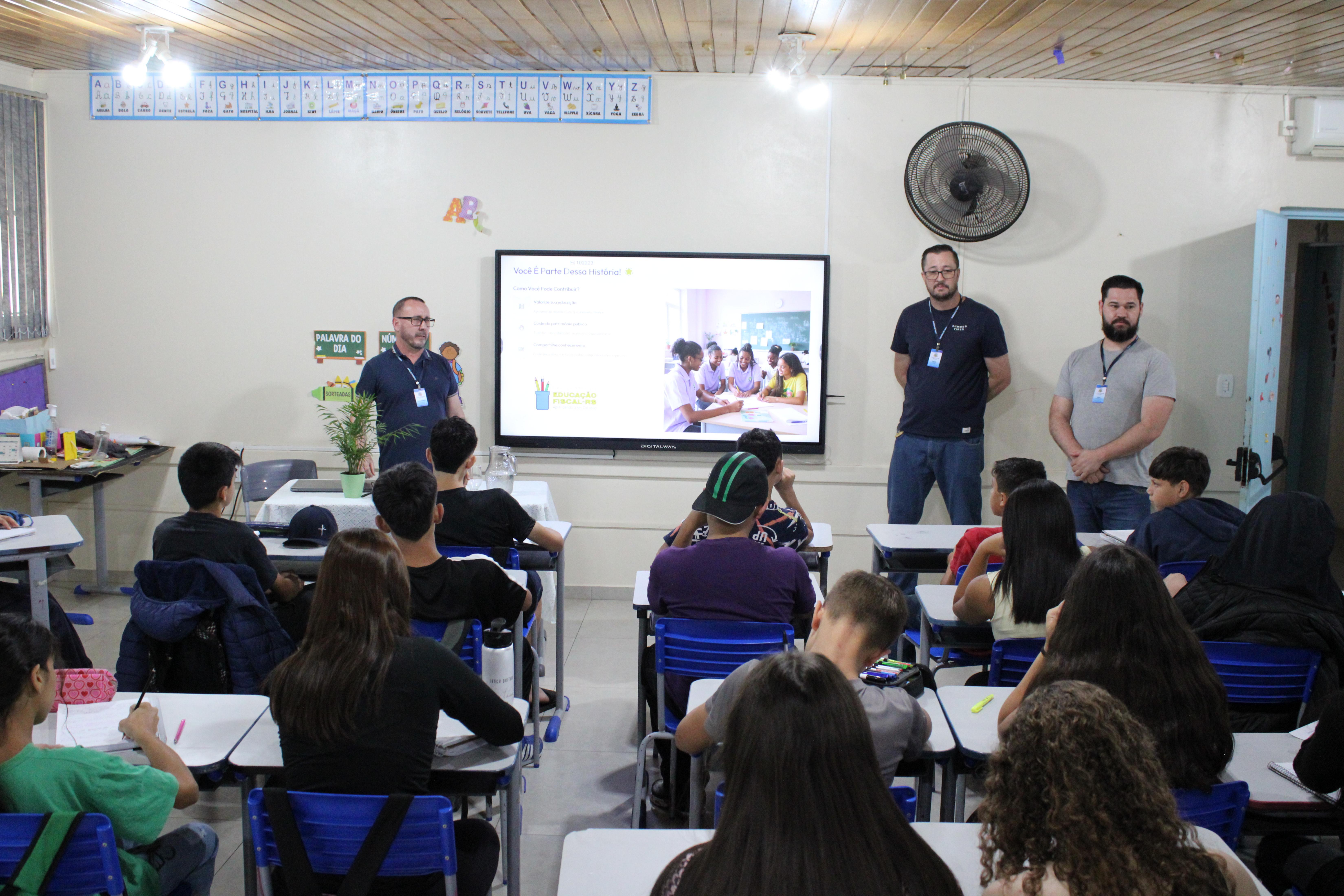 Durante o encontro, foram apresentados conteúdos sobre a destinação dos impostos arrecadados para os serviços públicos, com destaque para os investimentos em Educação.