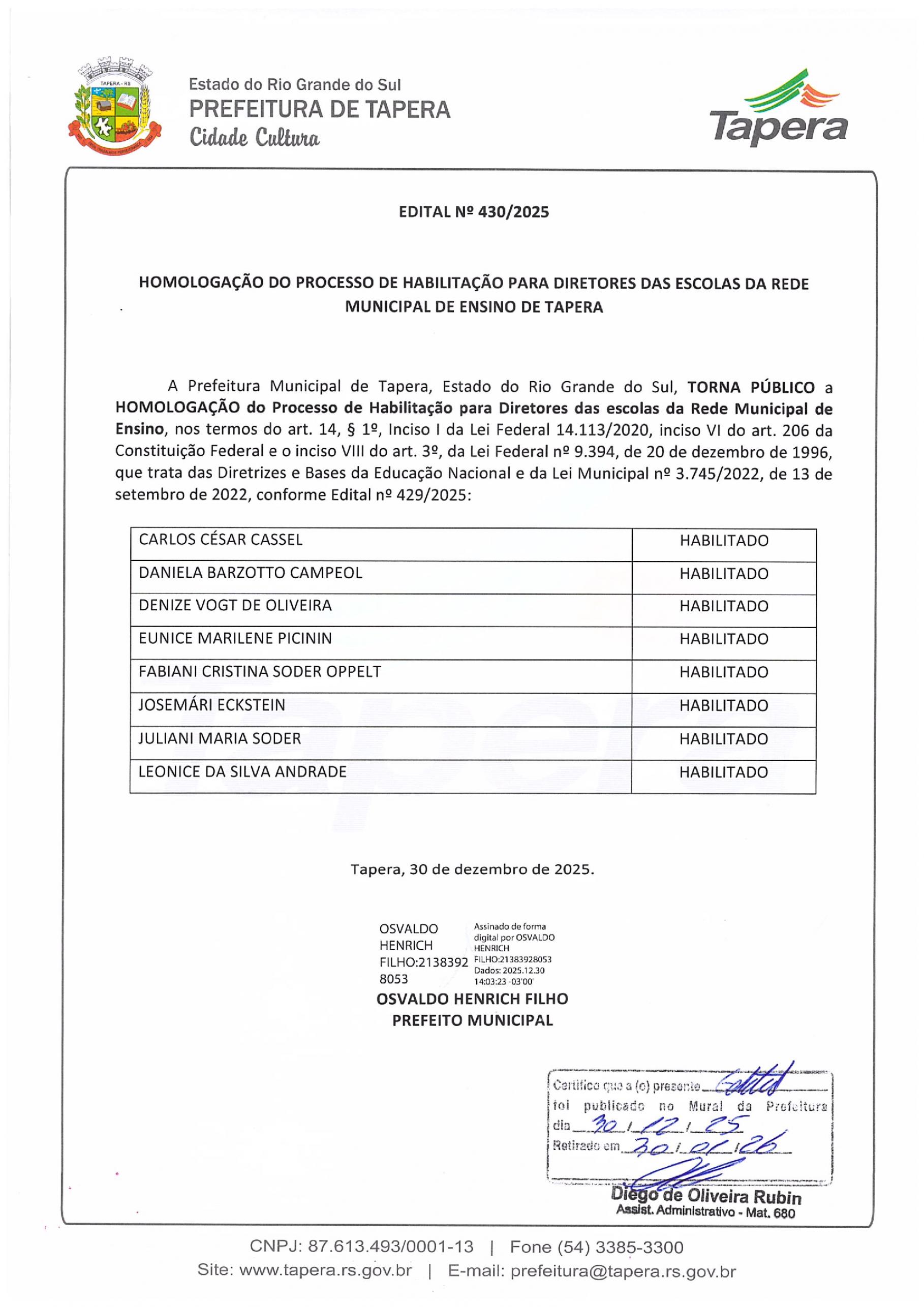 HOMOLOGAÇÃO DE HABILITAÇÃO DE DIRETORES DA REDE MUNICIPAL DE ENSINOHOMOLOGAÇÃO DE HABILITAÇÃO DE DIRETORES DA REDE MUNICIPAL DE ENSINO