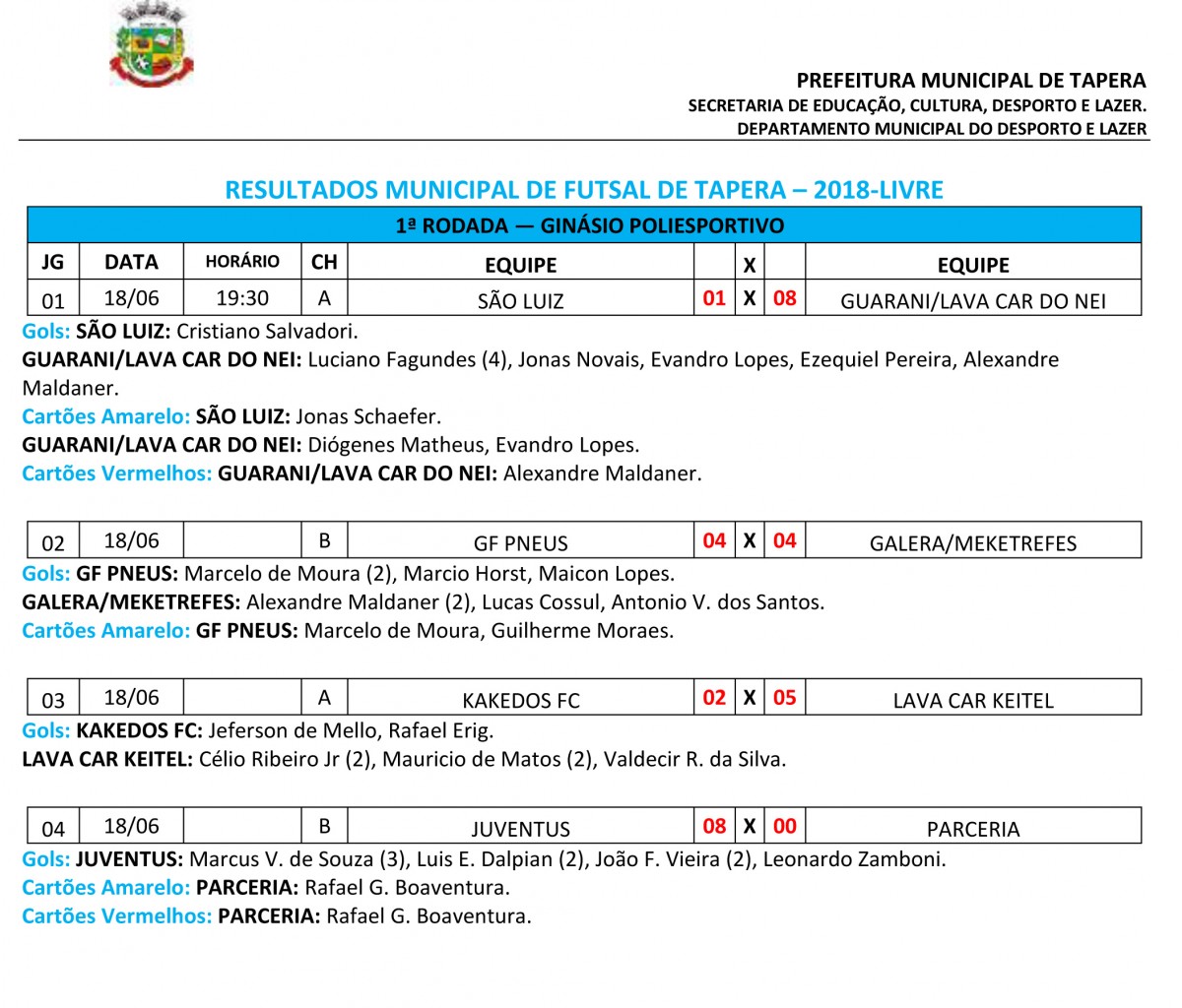 A categoria Livre disputará a 2ª rodada na próxima segunda-feira, 25/06. Os jogos serão entre: Guarany X Arsenal; Mercenários City X Magnatas; Galera/Meketrefes X Juventus; Guarani/Lava Car Do Nei X Kakedos.
