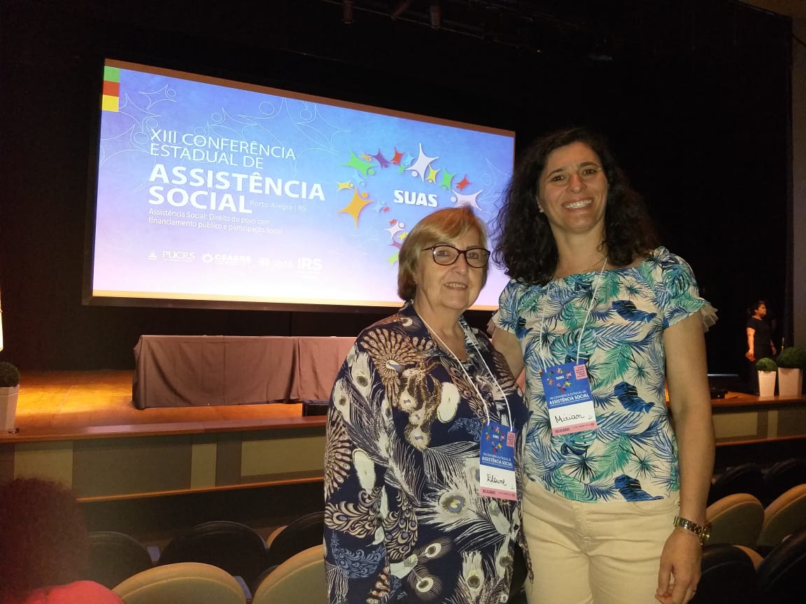 Nos dias 19 e 20 de novembro foi realizada em Porto Alegre a 13ª Conferência Estadual de Assistência Social. A Secretária Municipal de Assistência Social e Cidadania Miriam Saggin Visoto, juntamente com a usuária dos serviços Elaine Galvani, participaram do evento.