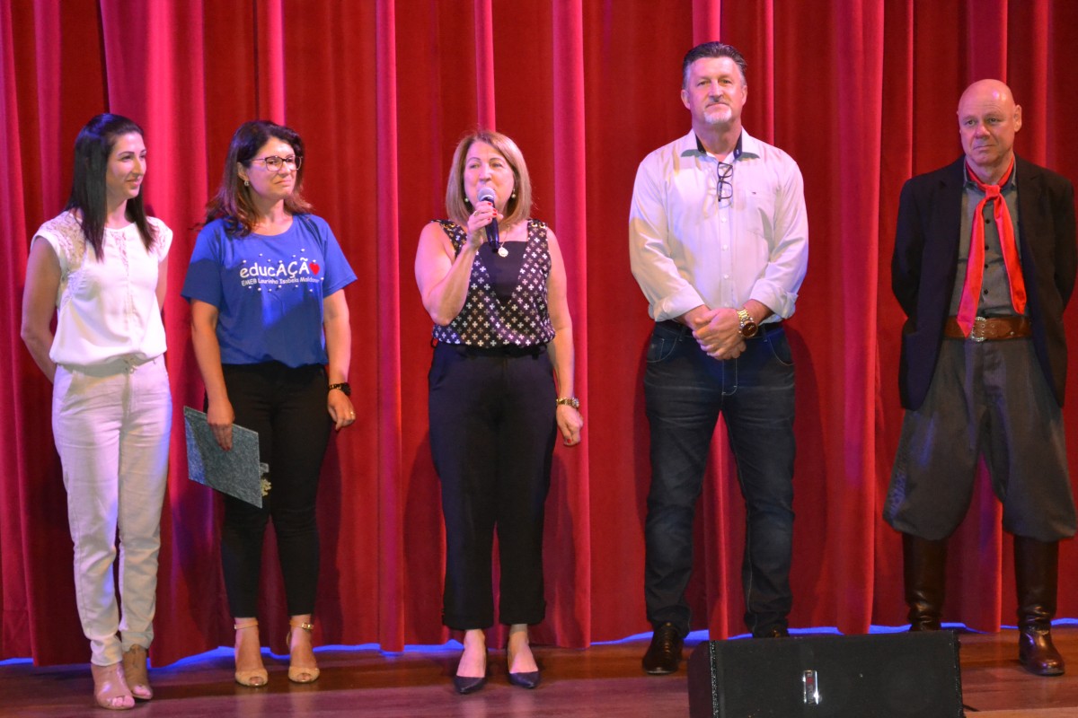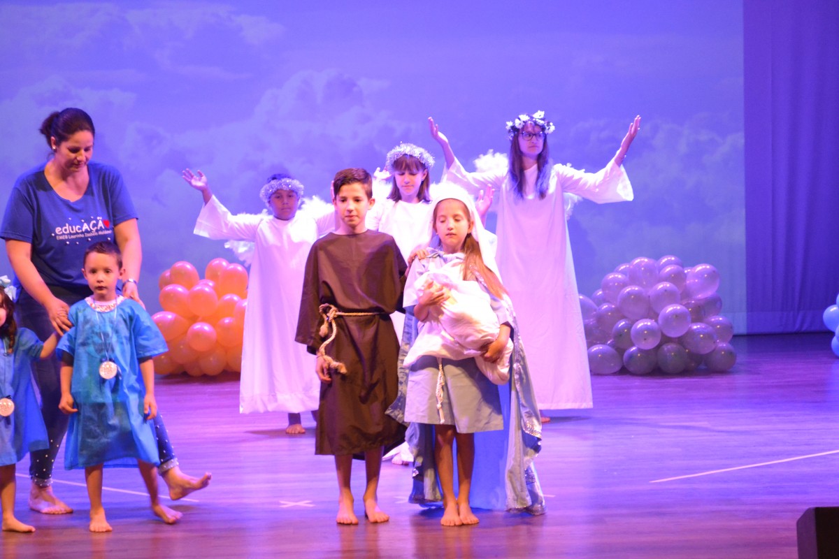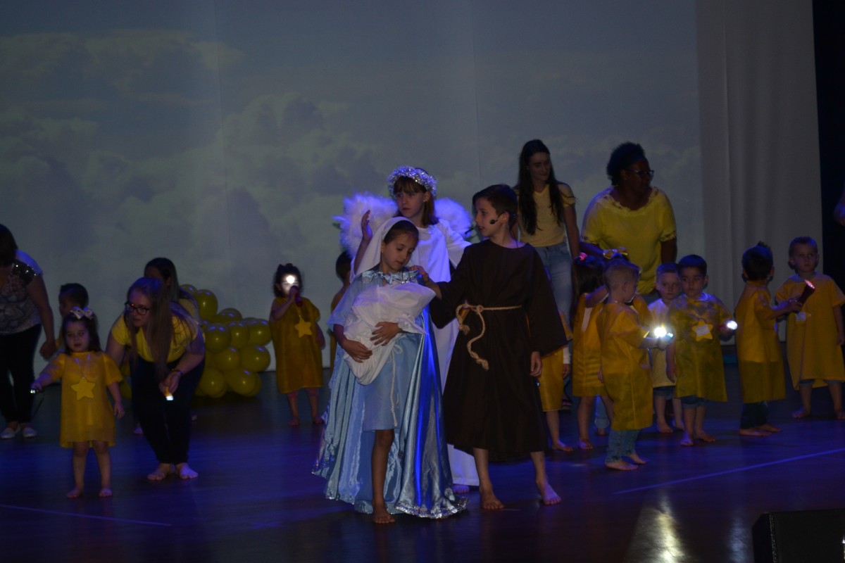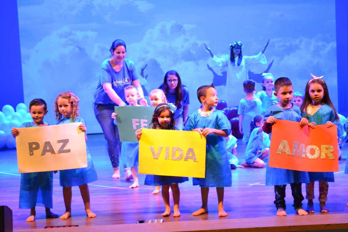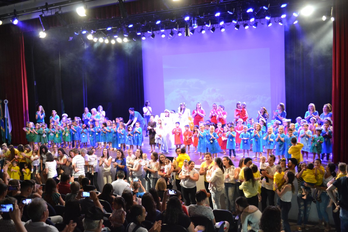 Na noite desta segunda-feira, 02/12, a EMEI Mundo da Criança e a EMEB Lourinha I. Maldaner apresentaram sua ?Noite de Natal: Anjos Coloridos?. O espetáculo aconteceu no Centro de Eventos e contou com a presença do Prefeito Municipal Volmar Kuhn, juntamente com o Vice-Prefeito Jorge Quadro e a Secretária Municipal de Educação, Cultura, Desporto e Lazer, Maria Regina Bósio Salvadori. Um grande público compareceu ao evento que inspirou e emocionou os presentes.