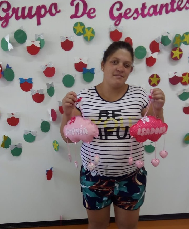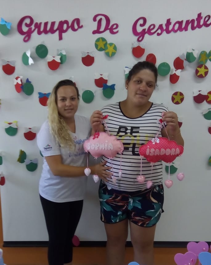 Na terça-feira, 10/12, foi feito o encerramento do grupo de gestantes ?Bebê à Bordo?, que aconteceu na ESF Jacob Bonato, na Vila Paz, acompanhada pela visitadora do PIM Maria Arlete da Silveira. O grupo se reúne semanalmente, 32 vezes ao ano, com palestras por profissionais da saúde e instrutores de artesanato do CRAS.