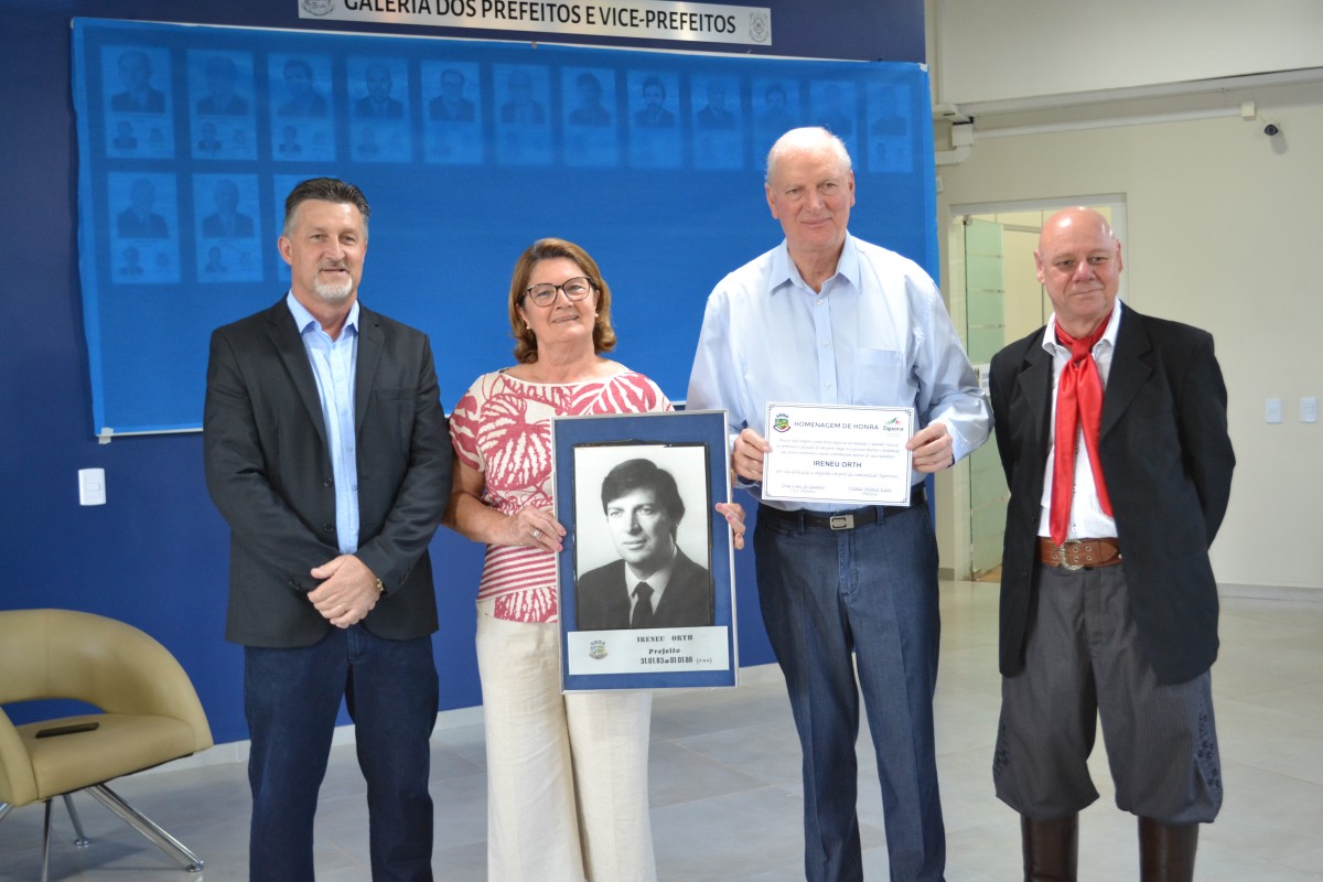 Com a presença de autoridades e familiares, foi inaugurada oficialmente na tarde da sexta-feira, 13/12, a Galeria de Prefeitos e Ex-Prefeitos da cidade de Tapera, no Hall de entrada da Prefeitura Municipal. Estiveram presentes ao ato o prefeito Volmar Kuhn e a Primeira Dama Marilei Borghetti Kuhn, o vice-prefeito Jorge Quadros e sua esposa Losane Roos de Quadros, o suplente de Senador e Ex-Prefeito Ireneu Orth, o Presidente da Câmara Municipal Elias Goulart, vereadores, além de secretários e diretores municipais.