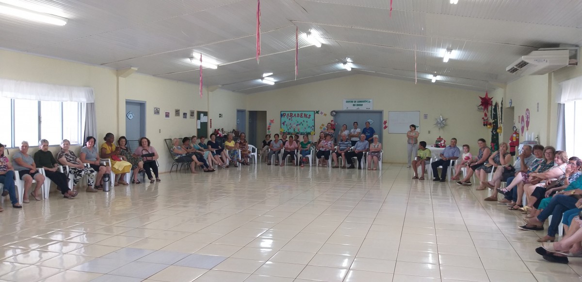 No início do baile ocorreu um momento de reflexão e espiritualidade. Em sua palavra de saudação, o Prefeito Volmar parabenizou a Secretaria e o CRAS pelo belo trabalho realizado durante o ano e desejou a todos os presentes votos de feliz Natal e um ano novo de muita saúde, paz e realizações. A animação musical foi feita pelo Sr. Timóteo Klessener.