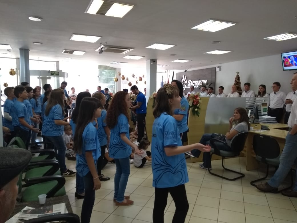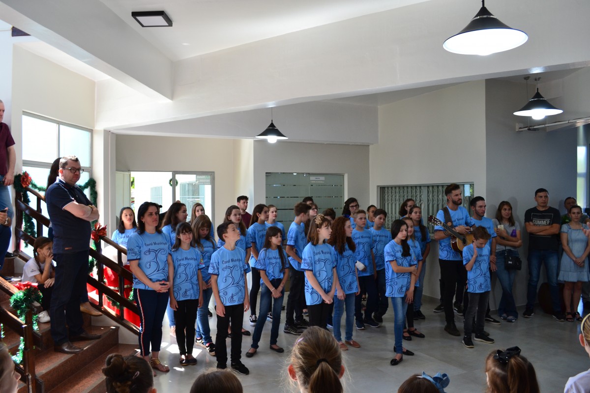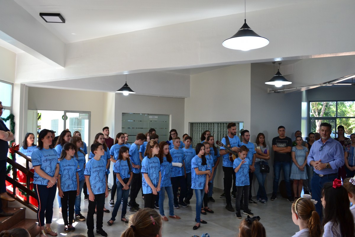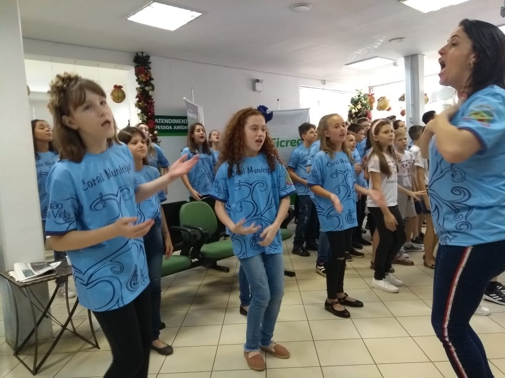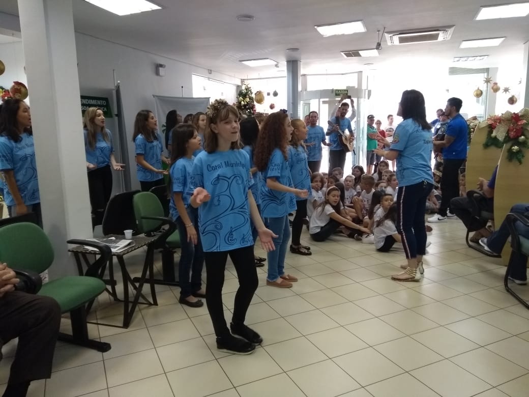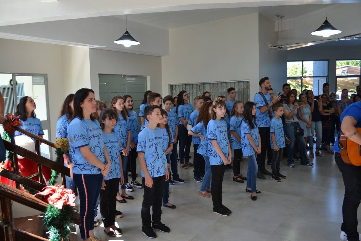 Na manhã desta quinta-feira, 19/12, os corais Municipal Infanto Juvenil e Municipal Infantil União Faz a Vida, fizeram visitas a instituições em que apresentaram músicas de Natal. Receberam as visitas o Centro Administrativo Municipal, Sureg, Lar do Idoso, Sicredi e Supermercado Santa Clara. A beleza do canto natalino emocionou os funcionários municipais e das empresas visitadas.