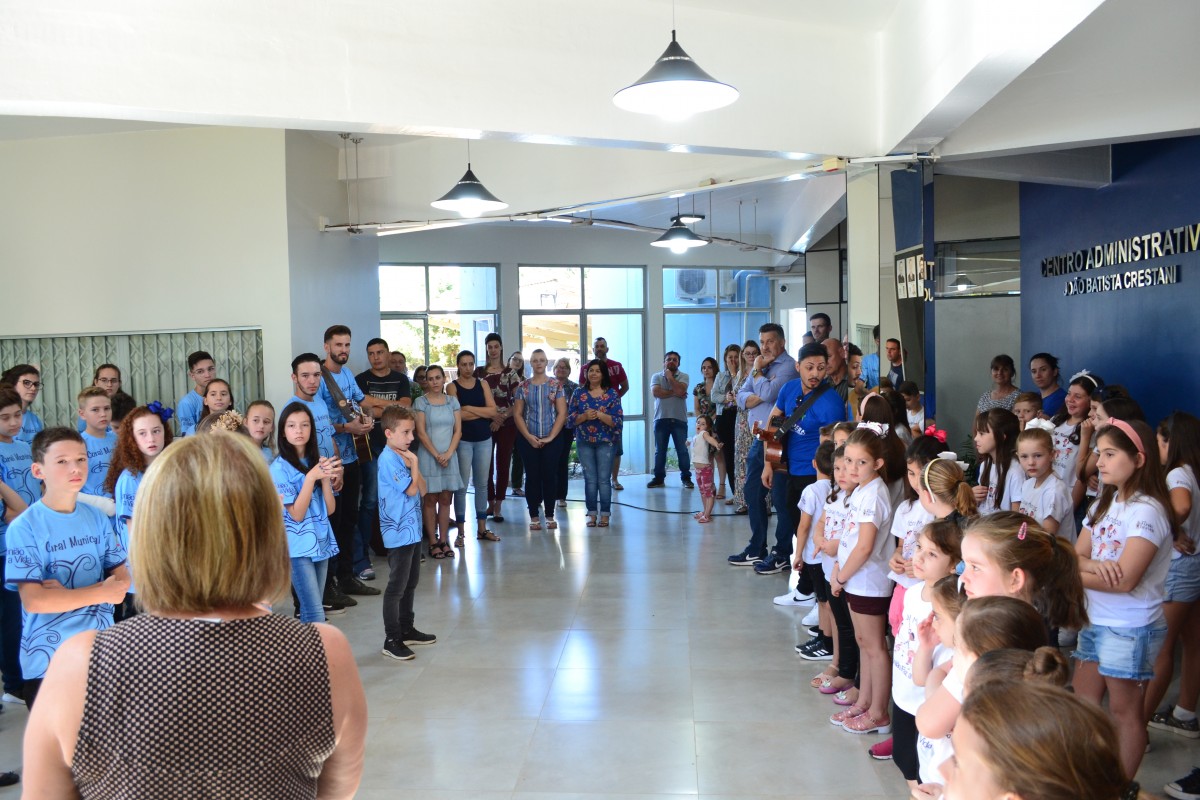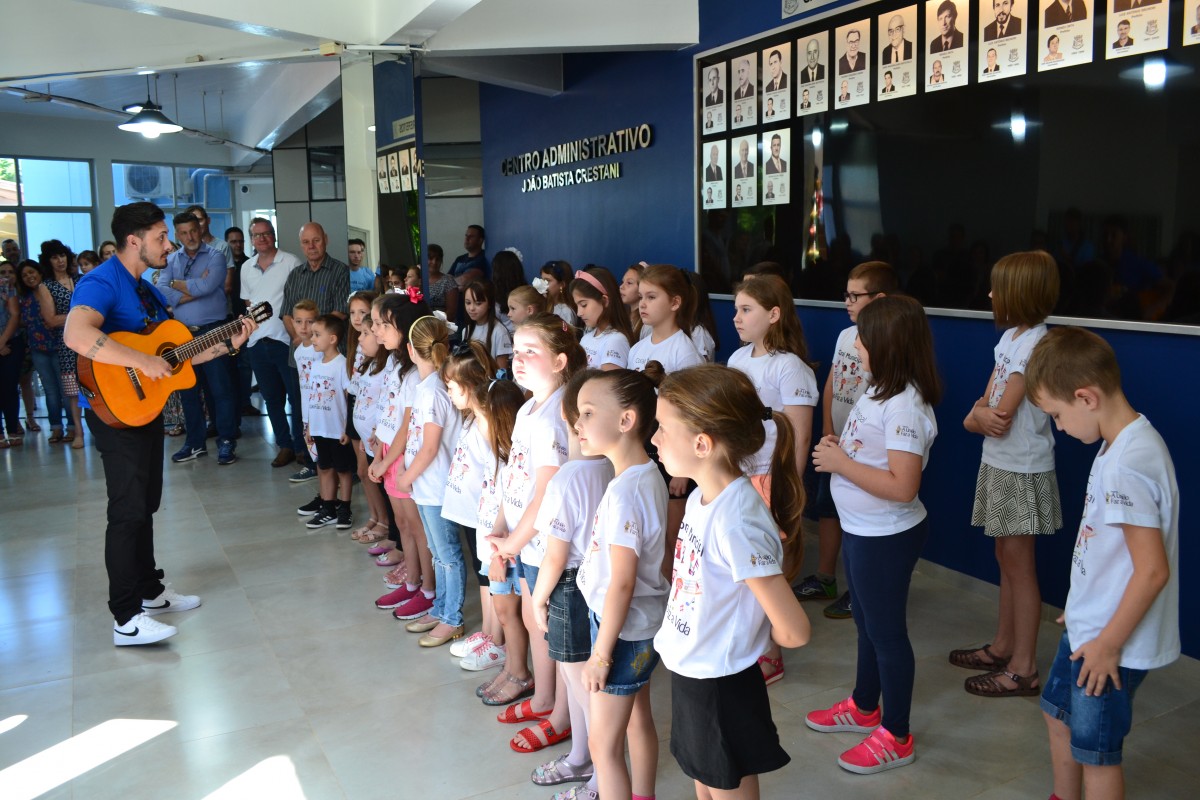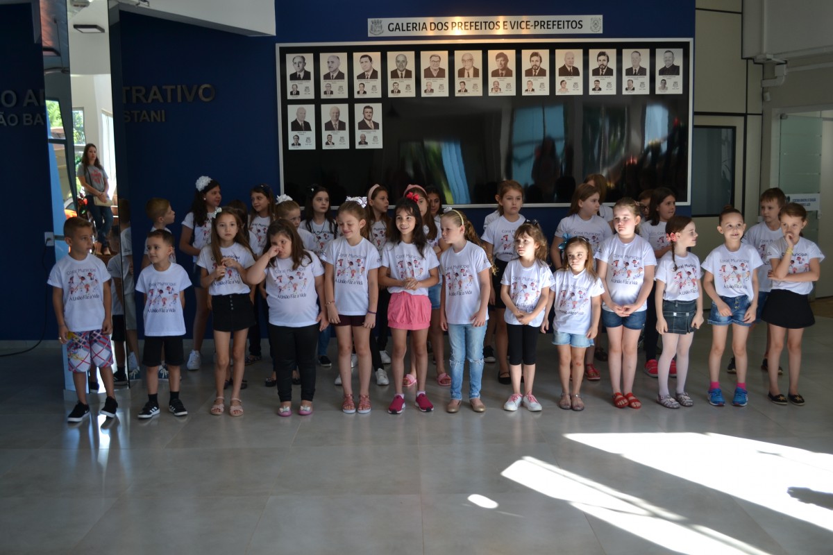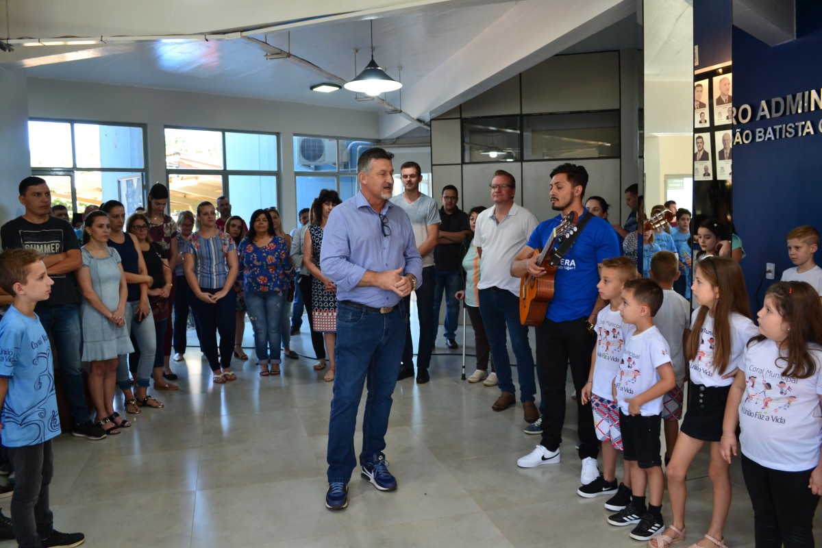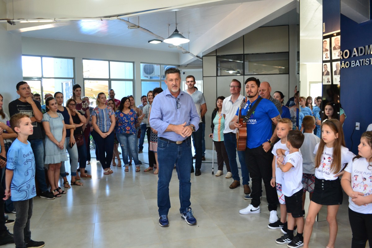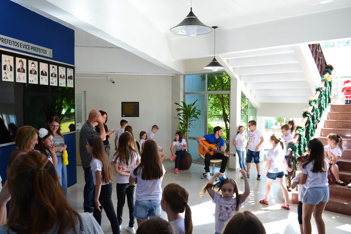 ?Vocês estão aprendendo a fazer o bem e trouxeram luz ao nosso Centro Administrativo?, foram as palavras de gratidão do Prefeito Municipal Volmar Kuhn, em agradecimento pela visita. Os corais são regidos respectivamente pelo Diretor de Cultura Prof. Daniel Rodrigues e pela Profa. Júlia Kuhn.