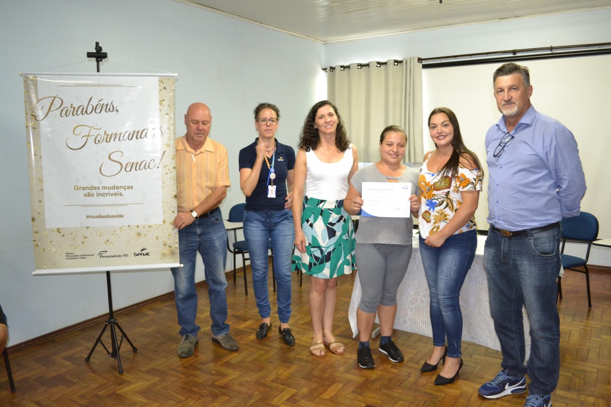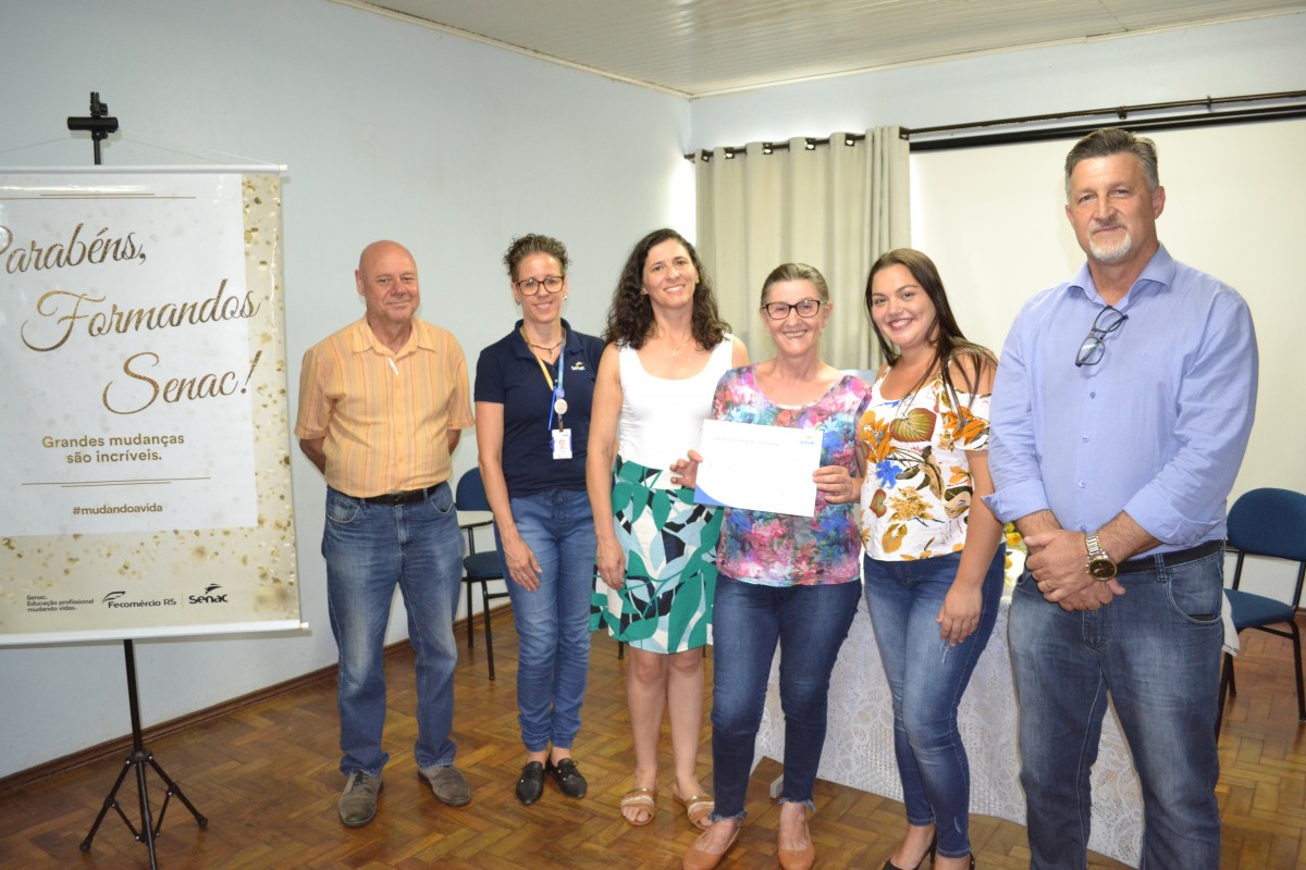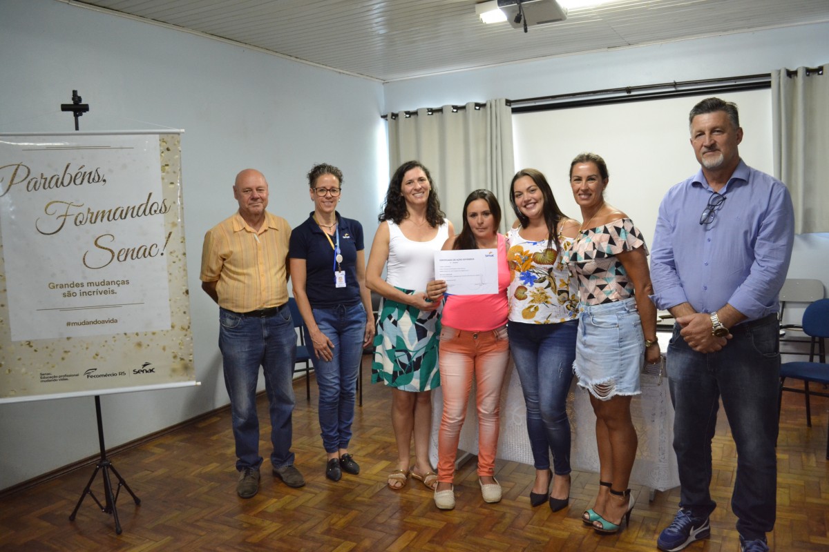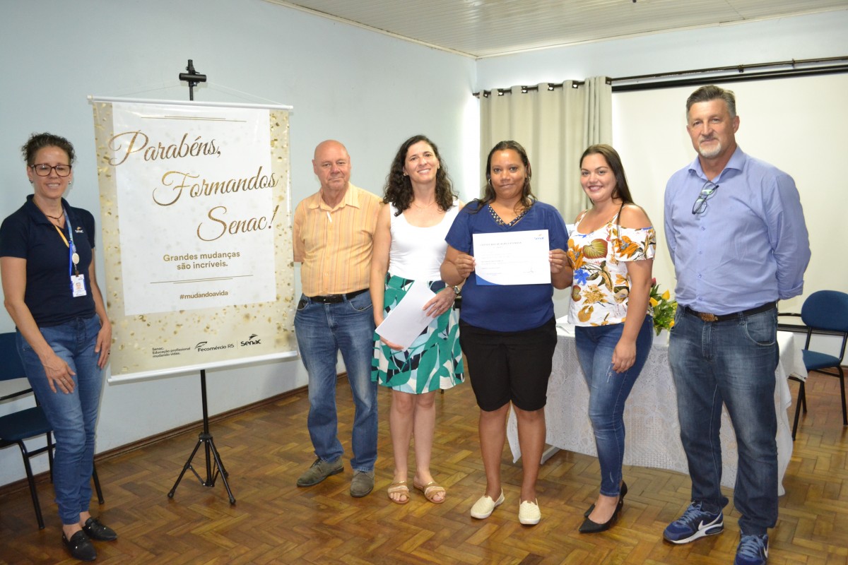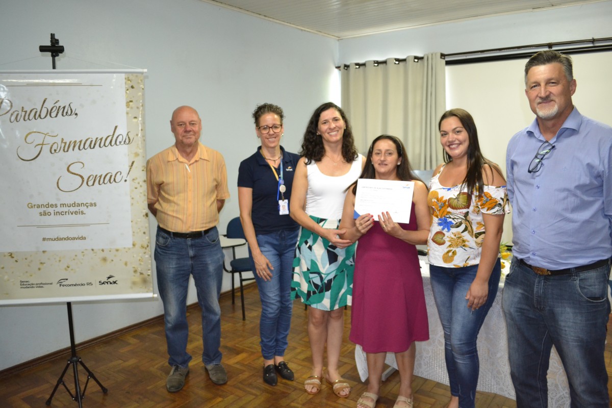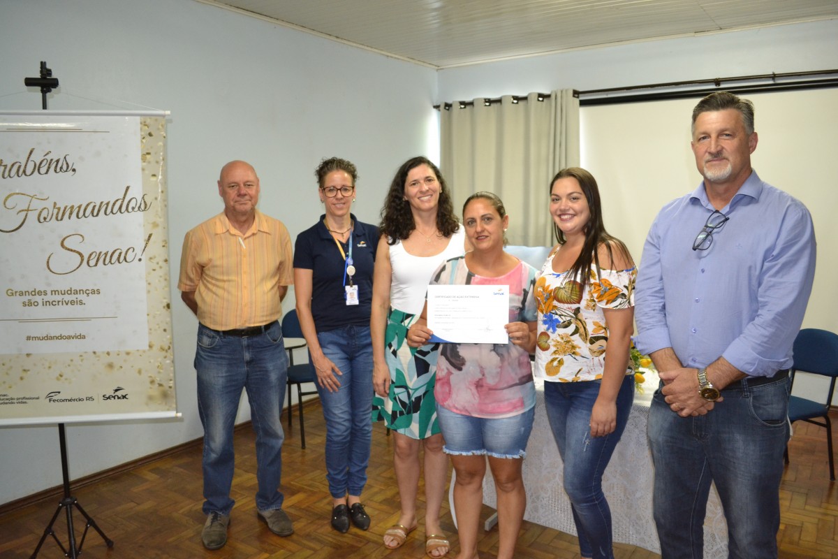 Ao todo 15 pessoas concluíram o curso. O Prefeito Volmar Kuhn esteve presente ao momento, juntamente com o Vice-Prefeito Jorge Quadros, a Secretária Municipal de Assistência Social e Cidadania Miriam Saggin Visoto, a técnica Jocelaine Dalmagro e a representante do Senac Carazinho Letícia Kraemer.