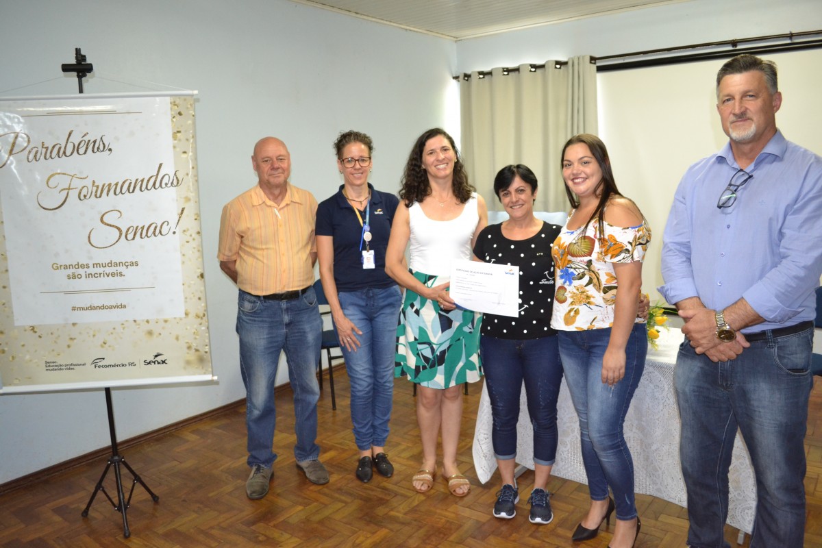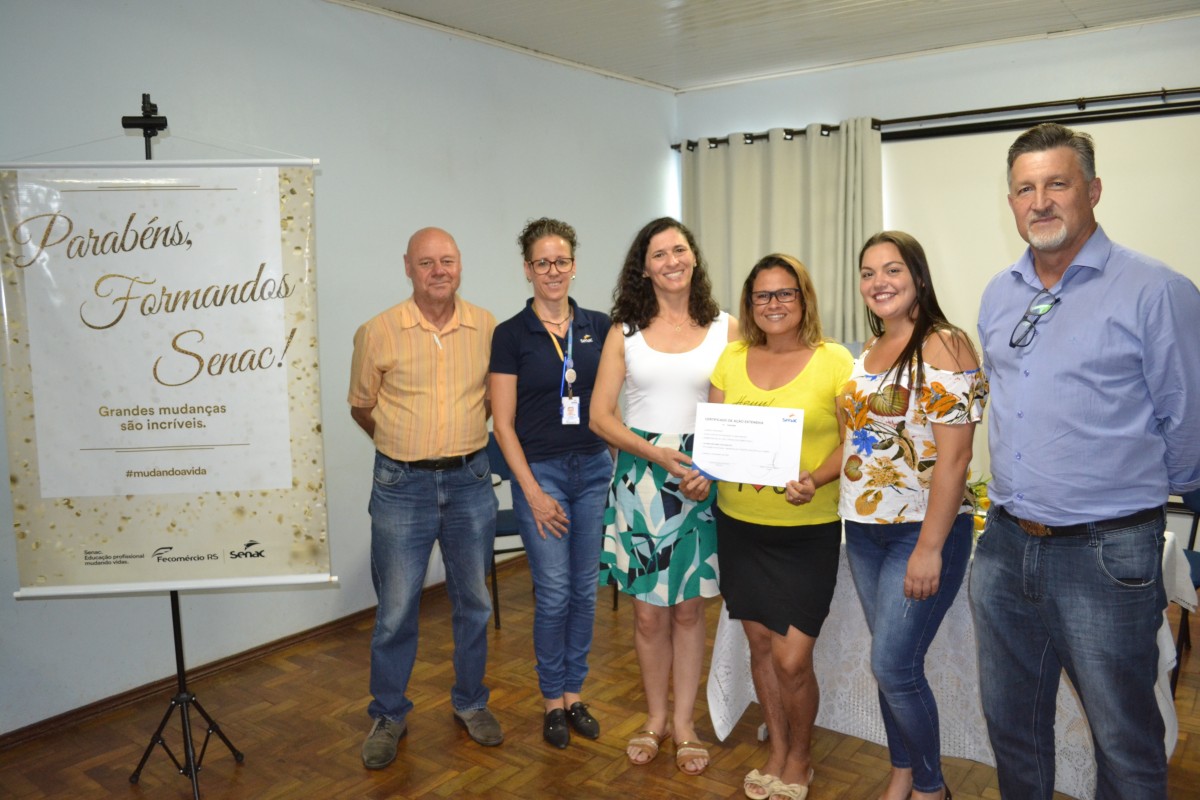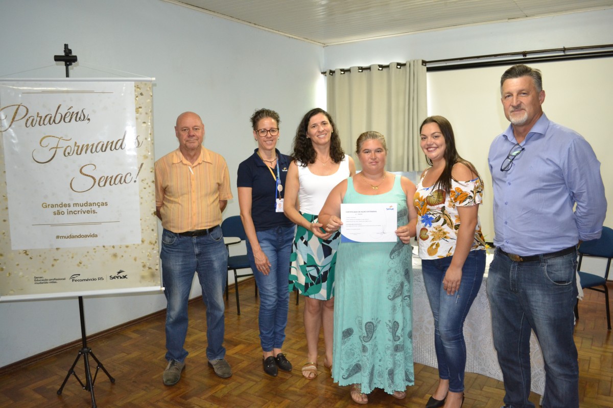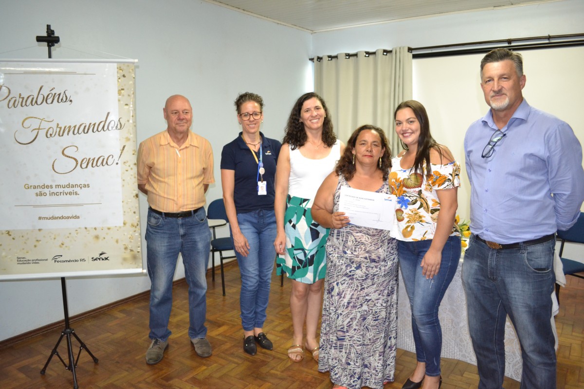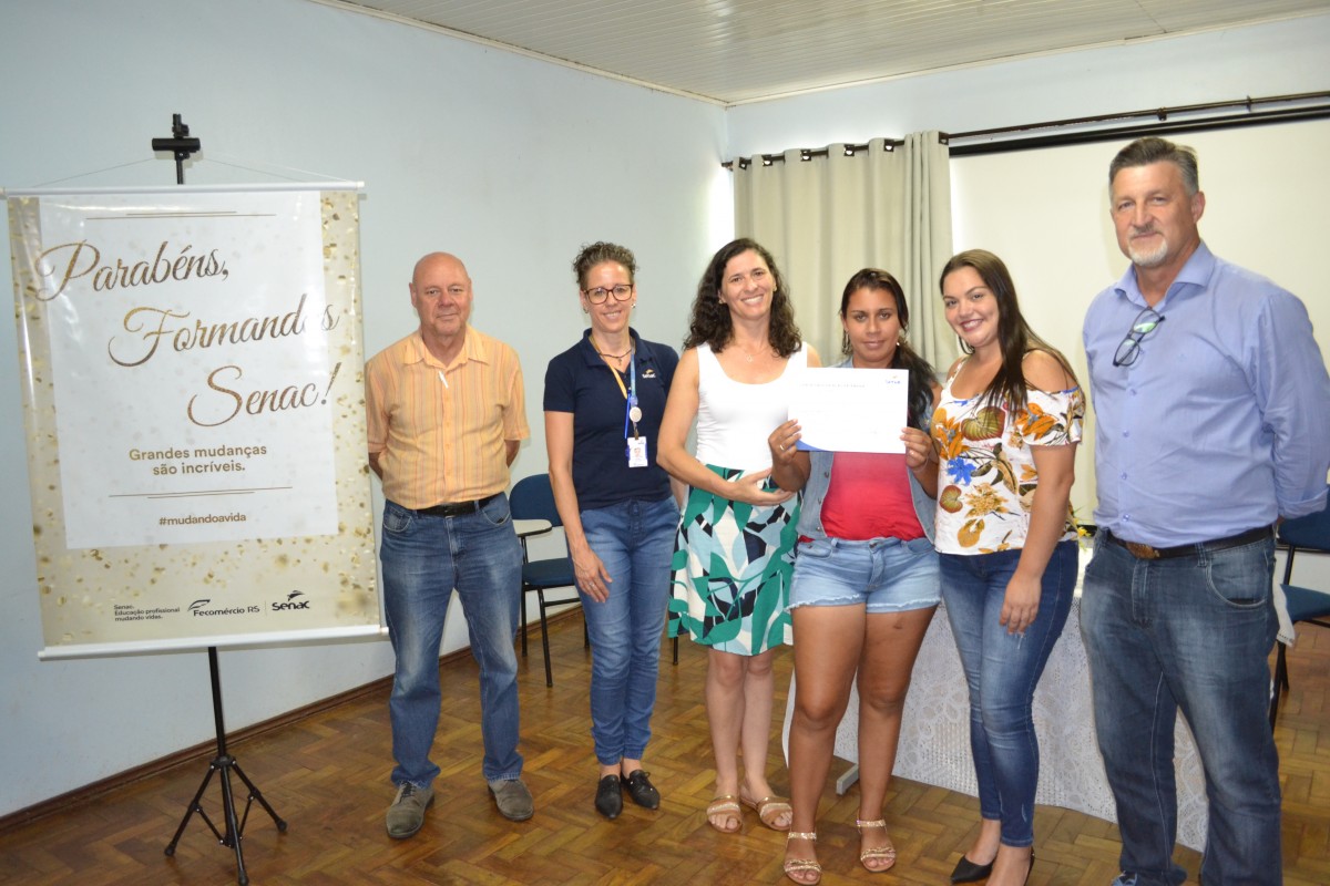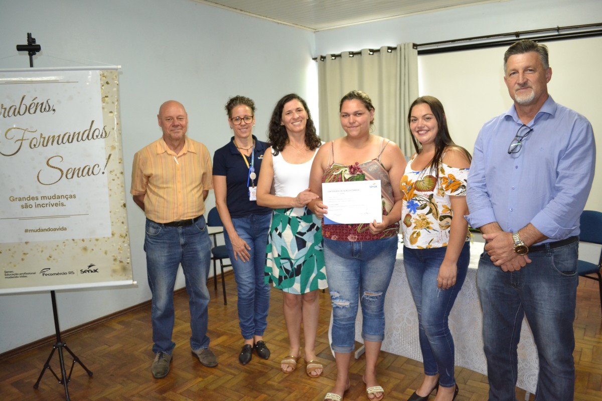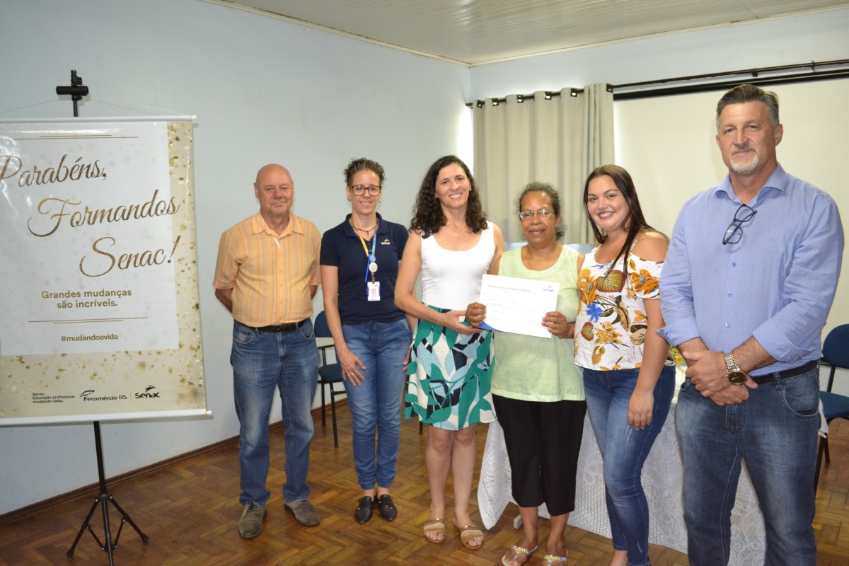 Ao todo 15 pessoas concluíram o curso. O Prefeito Volmar Kuhn esteve presente ao momento, juntamente com o Vice-Prefeito Jorge Quadros, a Secretária Municipal de Assistência Social e Cidadania Miriam Saggin Visoto, a técnica Jocelaine Dalmagro e a representante do Senac Carazinho Letícia Kraemer.
