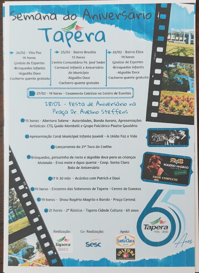 Semana de Aniversário. Tapera 65 anosSemana de Aniversário. Tapera 65 anos