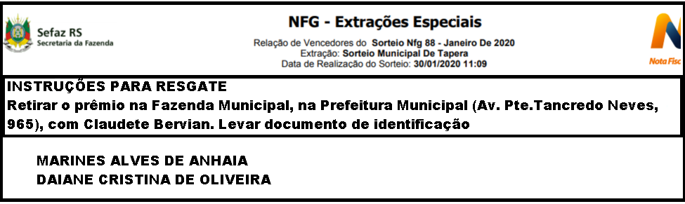 Ganhadoras da Nota Fiscal gaúchaGanhadoras da Nota Fiscal gaúcha