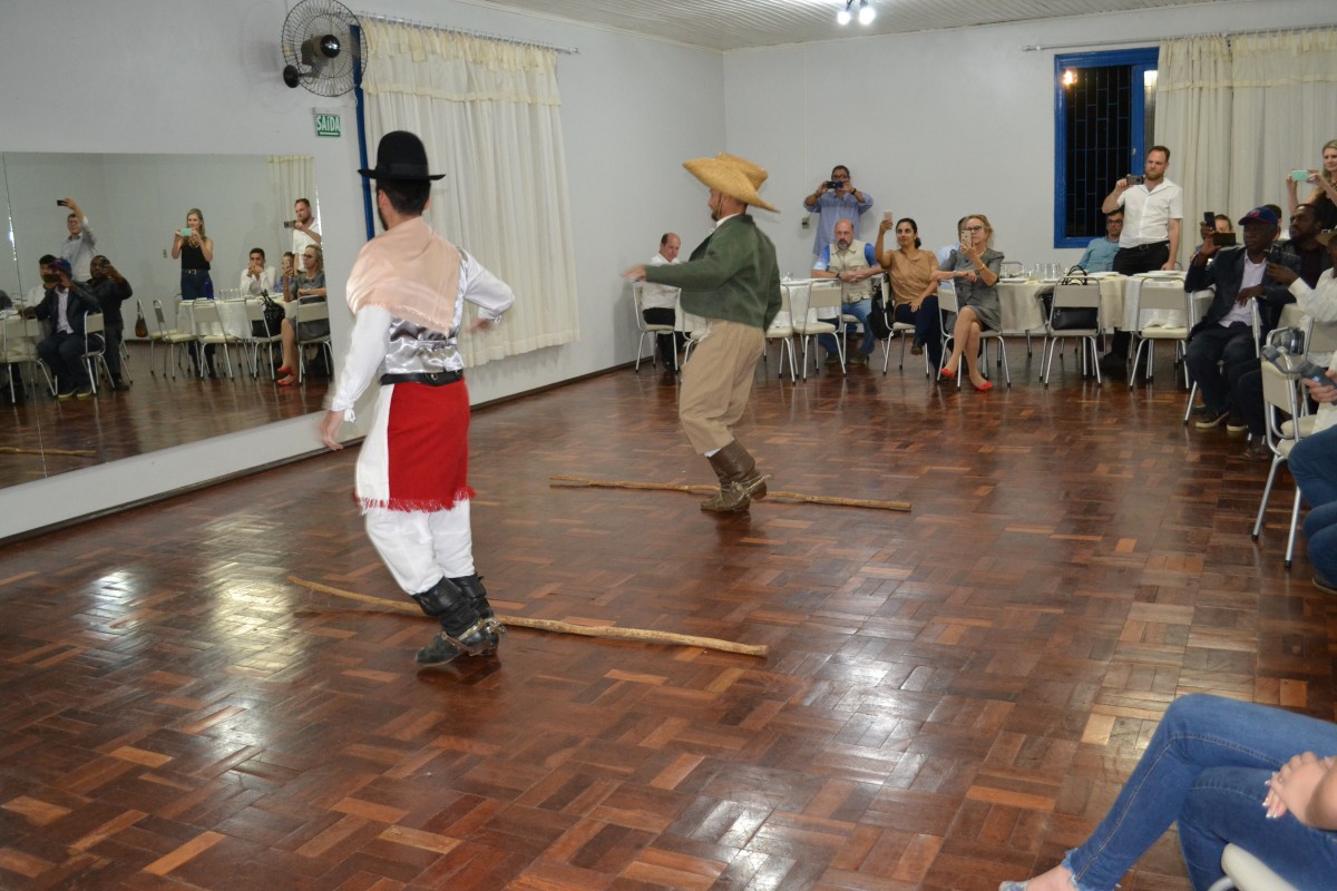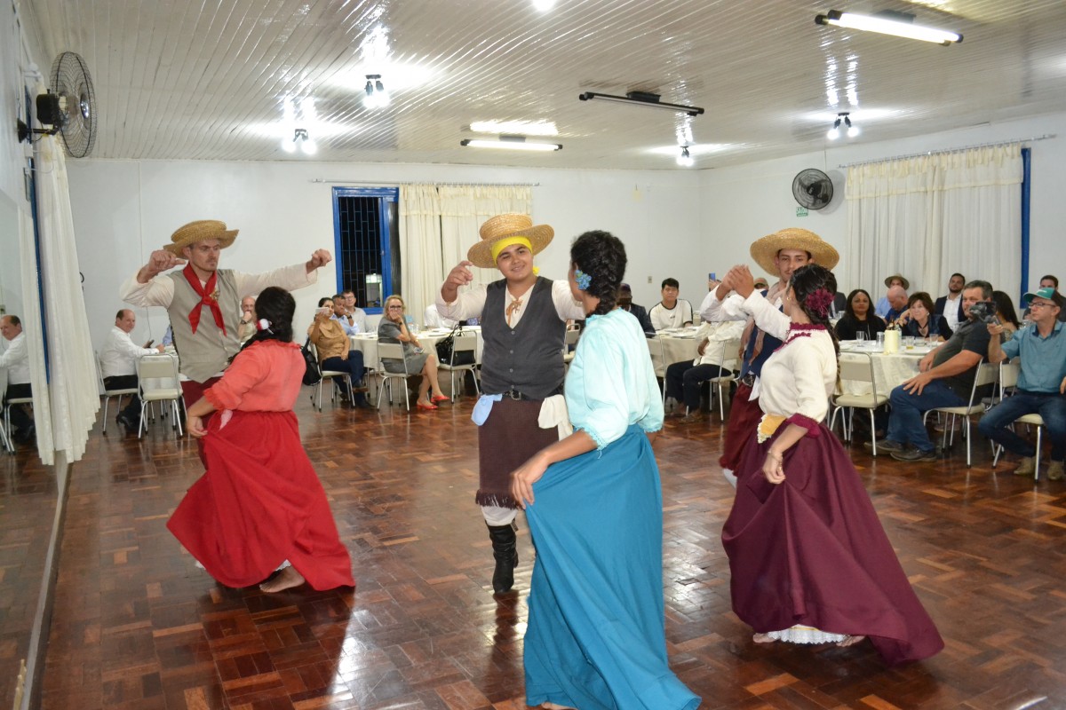 Durante o encontro, que aconteceu na sede da AABB, a comitiva teve a oportunidade de assistir apresentações artísticas culturais pelo Coral Municipal A União faz a Vida, pelo Grupo Folclórico Piazito Gaudério e pelo CTG Guido Mombelli, após foi servido um jantar a todos os presentes.