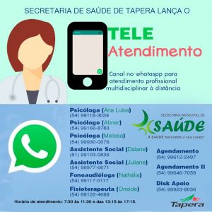 Secretaria Municipal da Saúde disponibiliza tele atendimentoSecretaria Municipal da Saúde disponibiliza tele atendimento