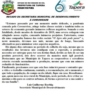 Recado da Secretaria Municipal de Desenvolvimento à populaçãoRecado da Secretaria Municipal de Desenvolvimento à população