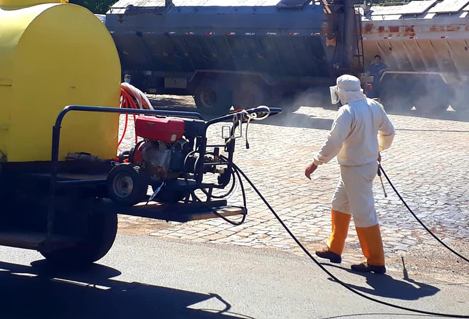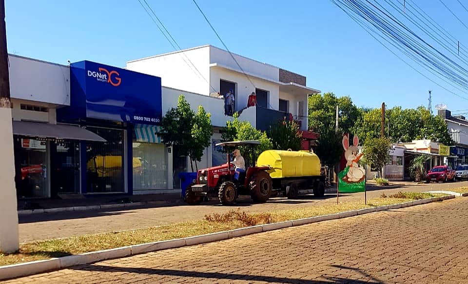 Como medida de prevenção e combate à disseminação do corovavirus (Covid 19) Continua o serviço de sanitização nas vias de maior movimentação de pessoas em Tapera.