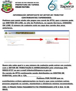Aviso importante do Setor de Tributos da Prefeitura MunicipalAviso importante do Setor de Tributos da Prefeitura Municipal