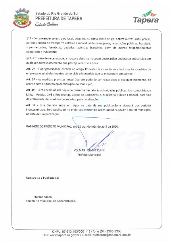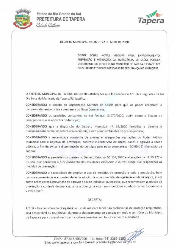 Decreto Municipal sobre o uso de máscaras de proteçãoDecreto Municipal sobre o uso de máscaras de proteção