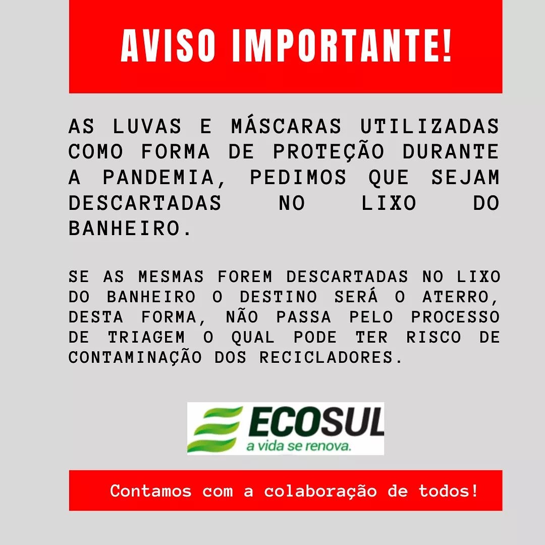Aviso importante da ECOSUL sobre o descarte de máscarasAviso importante da ECOSUL sobre o descarte de máscaras