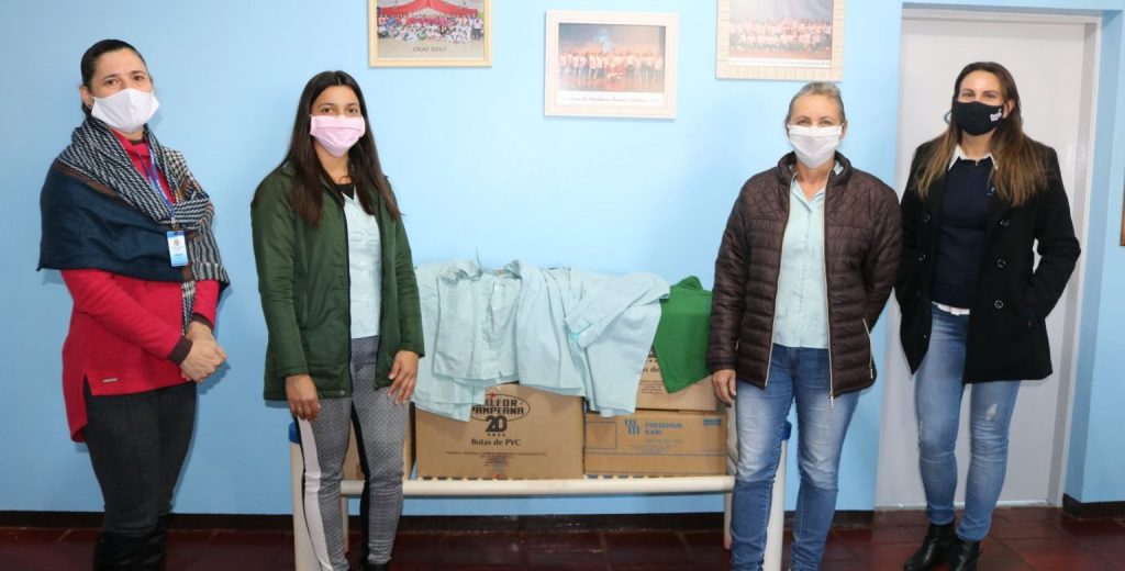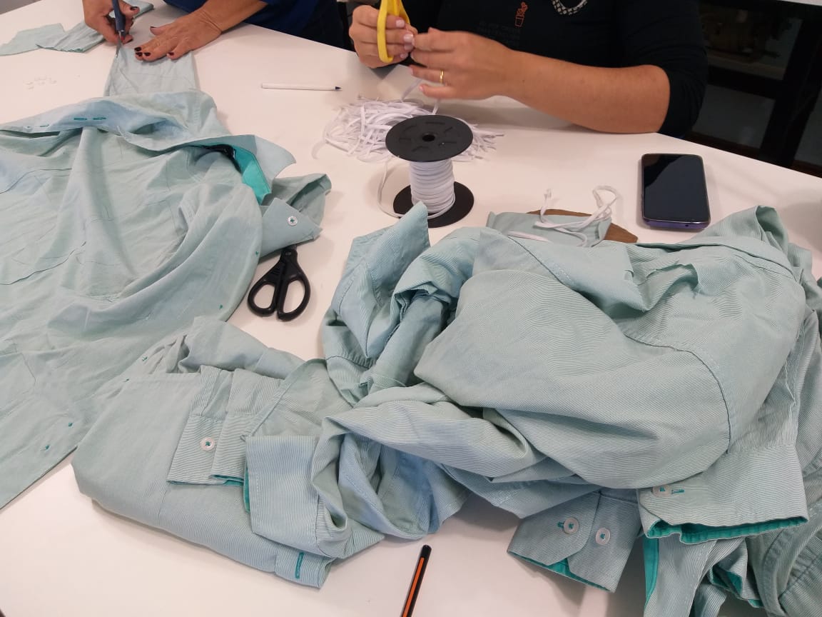 Também foram recebidas doações de camisas da Cotrisoja, entregues pelas colaboradoras Morgana Pretto, Neida Borges e Lizandra Folettocujo, e cujo tecido já está sendo transformado em máscaras a serem distribuídas à população. A Secretária de Assistência Social e Cidadania, Miriam Saggin Visoto agradece em nome da Administração Municipal e enfatiza a importância da continuidade da campanha, como forma de solidariedade e superação desse momento de pandemia.