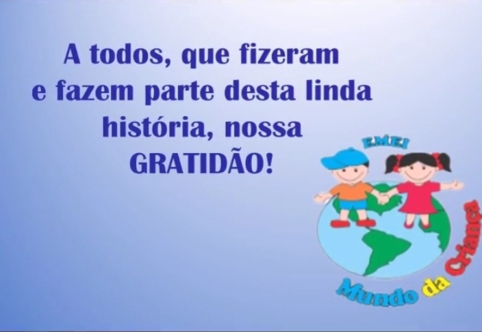 "Com grande alegria, reconhecimento e gratidão a cada um de vocês por acreditarem e colaborarem na construção da história de nossa Emei... nossa missão sempre foi e será buscar a qualidade nas ações de cuidar e educar, com afeto! Todos nós, juntos, tornamos a nossa escola um lugar de aprender, conviver e ser feliz!