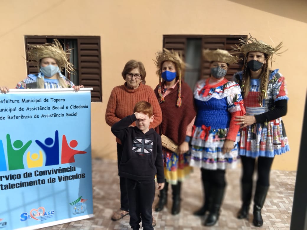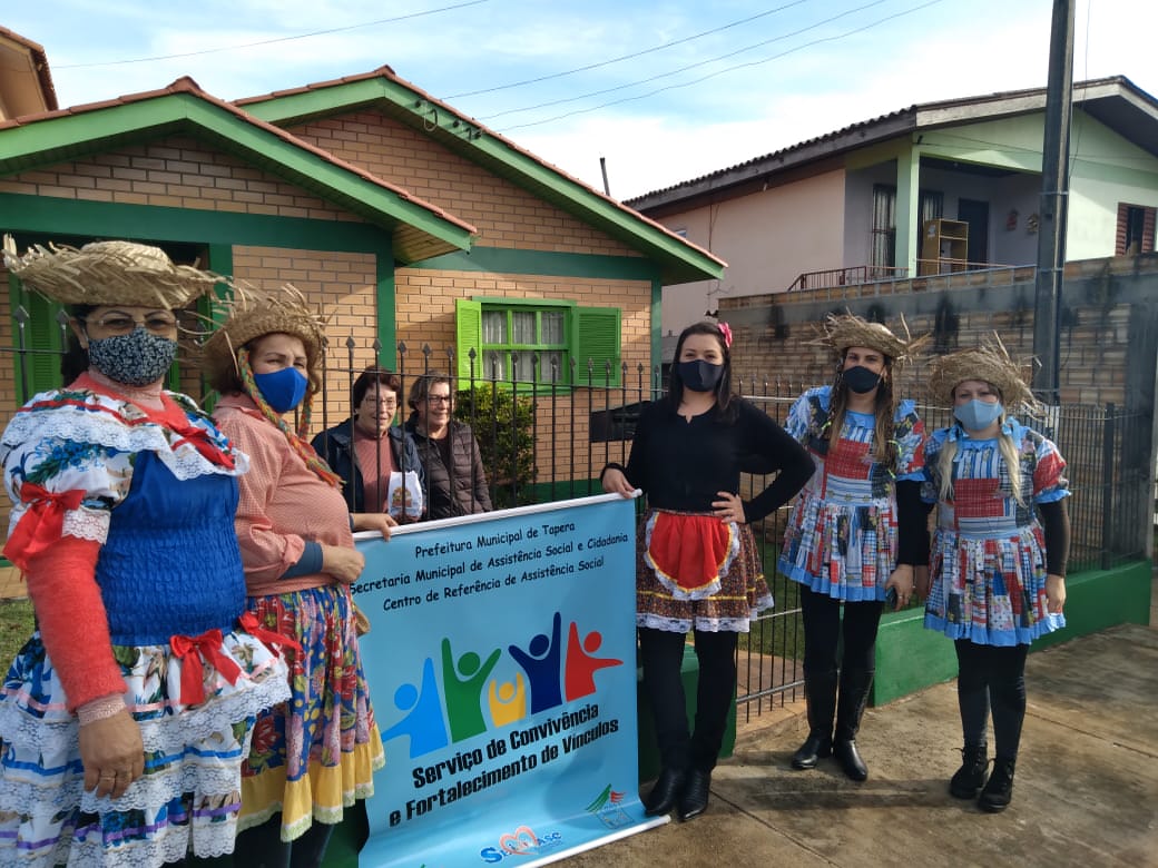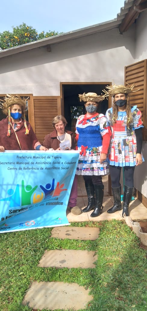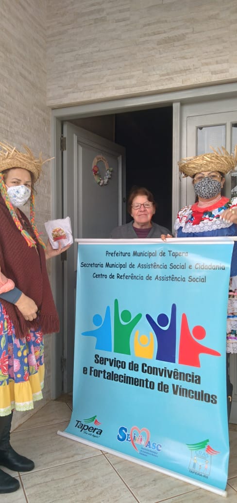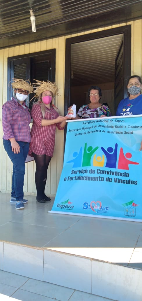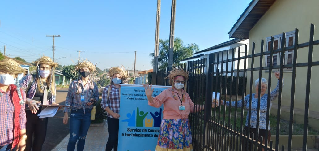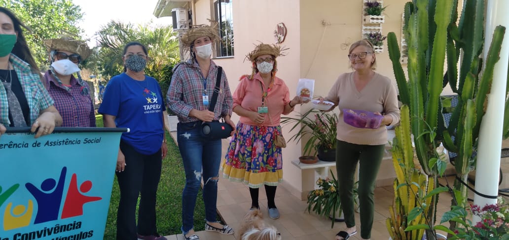 A Secretaria Municipal de Assistência Social e Cidadania, através do CRAS, desenvolveu atividades com os Grupos de Convivência e Fortalecimento de Vínculos - SCFV - com crianças, jovens e Grupos da 3 ° Idade, que receberam a tarefa de ornamentar ou enfeitar a casa com motivos de Festa Junina - São João. Todos os que participam deste Serviço receberam um carinho muito especial, um pacote com iguarias juninas produzidas no CRAS: pipoca, cri cri, grustoli e batata doce assada.