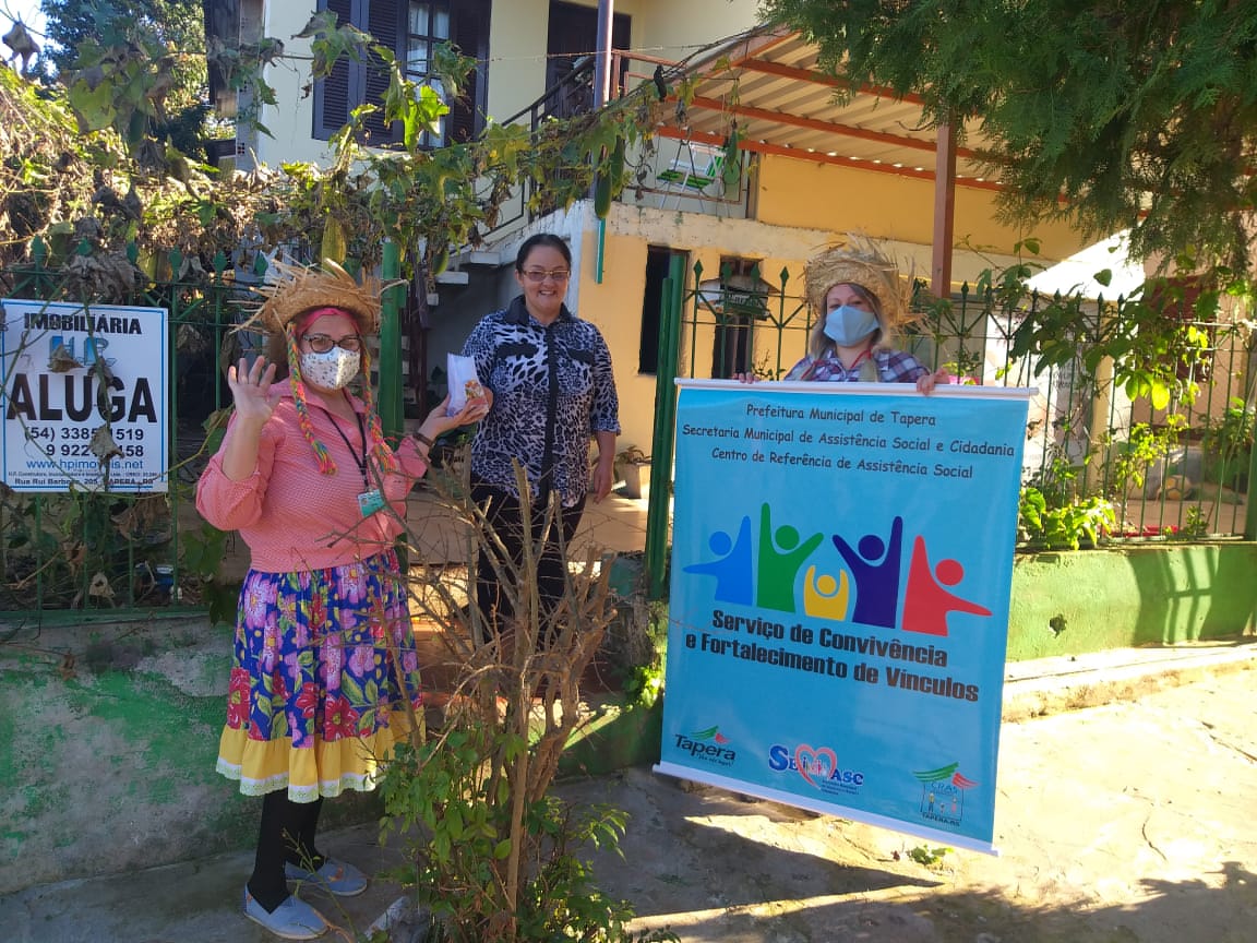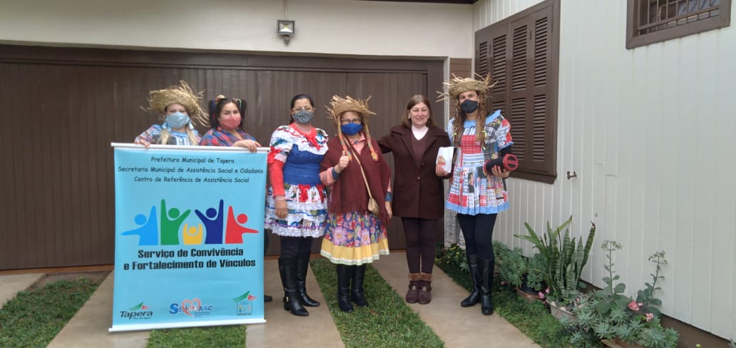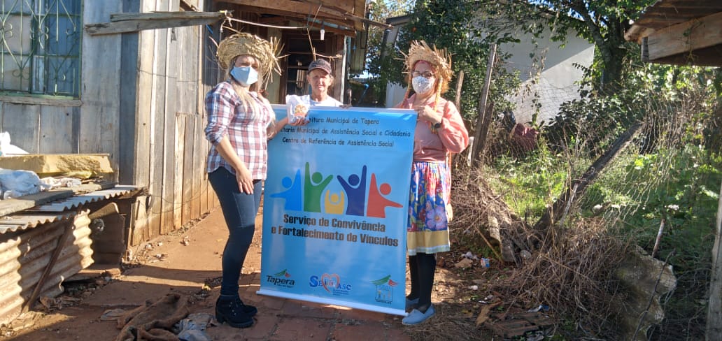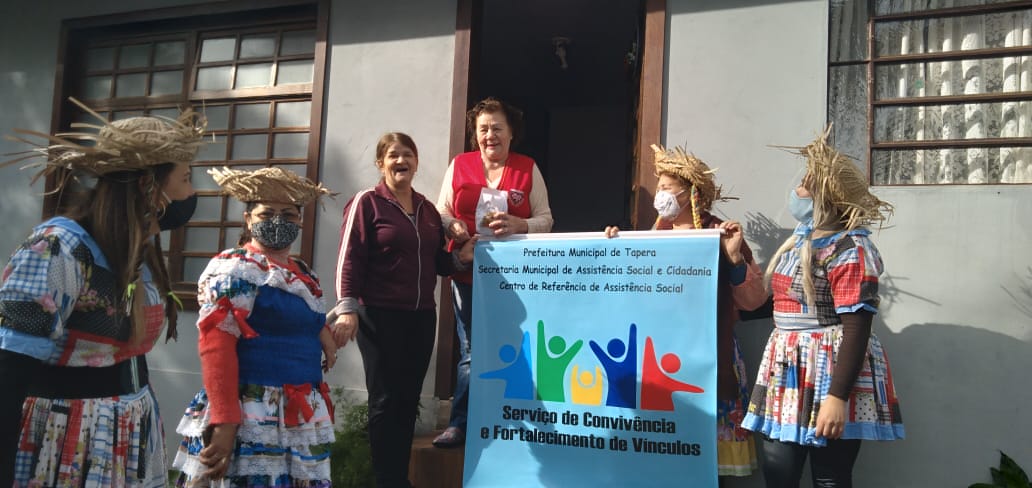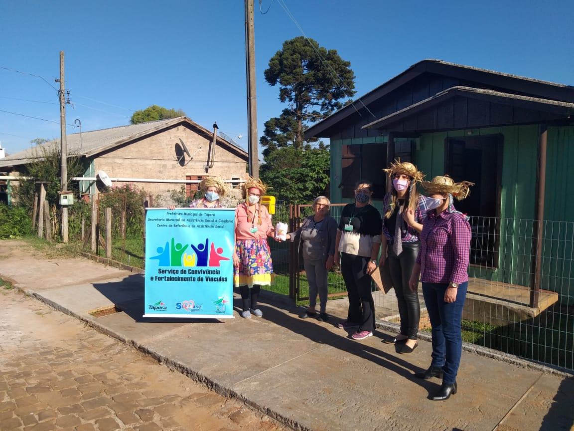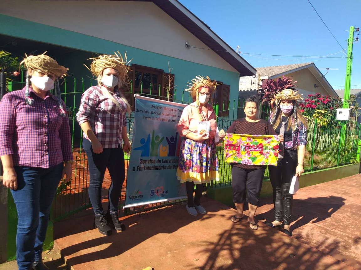 A Secretaria Municipal de Assistência Social e Cidadania, através do CRAS, desenvolveu atividades com os Grupos de Convivência e Fortalecimento de Vínculos - SCFV - com crianças, jovens e Grupos da 3 ° Idade, que receberam a tarefa de ornamentar ou enfeitar a casa com motivos de Festa Junina - São João. Todos os que participam deste Serviço receberam um carinho muito especial, um pacote com iguarias juninas produzidas no CRAS: pipoca, cri cri, grustoli e batata doce assada.