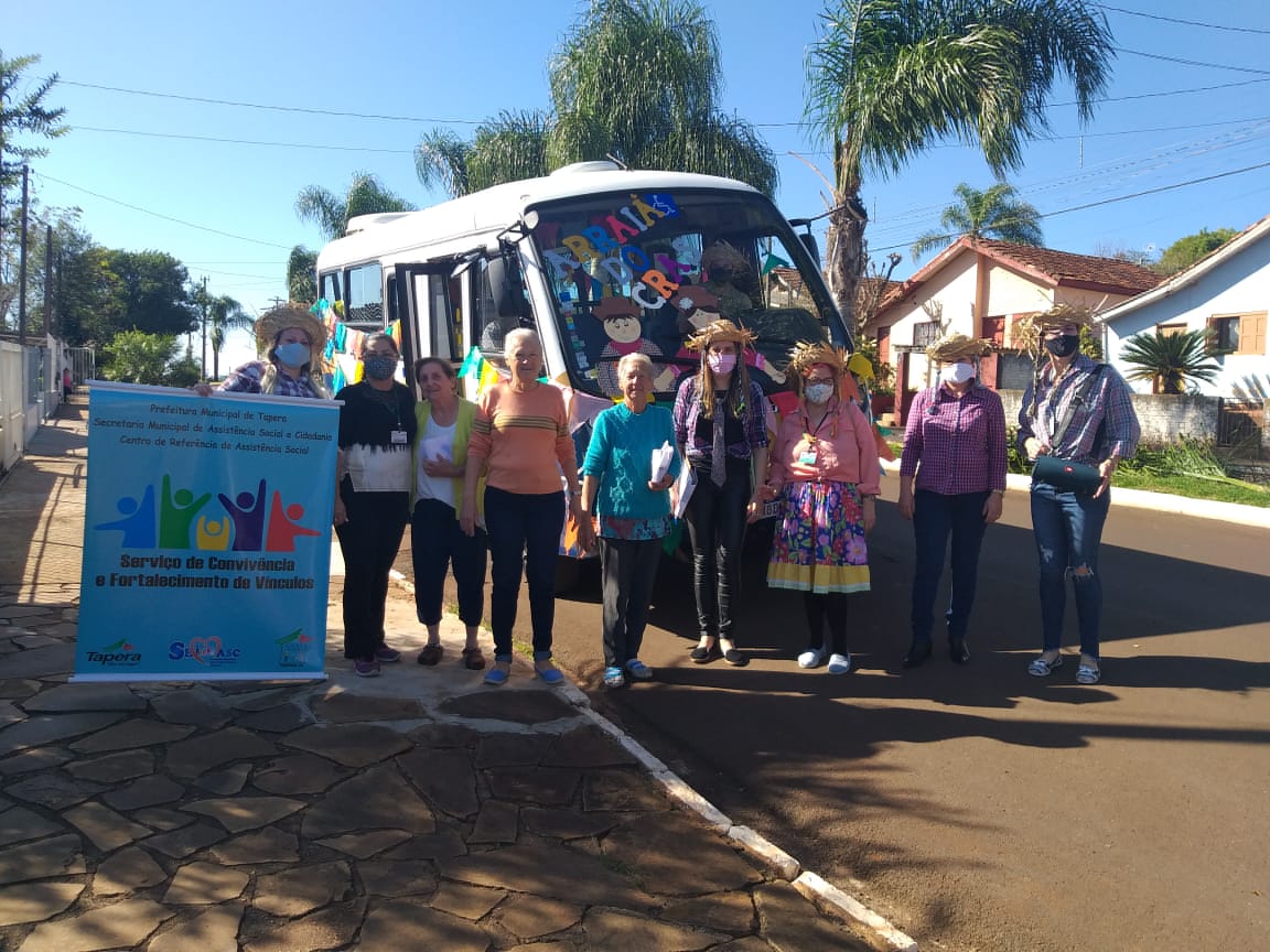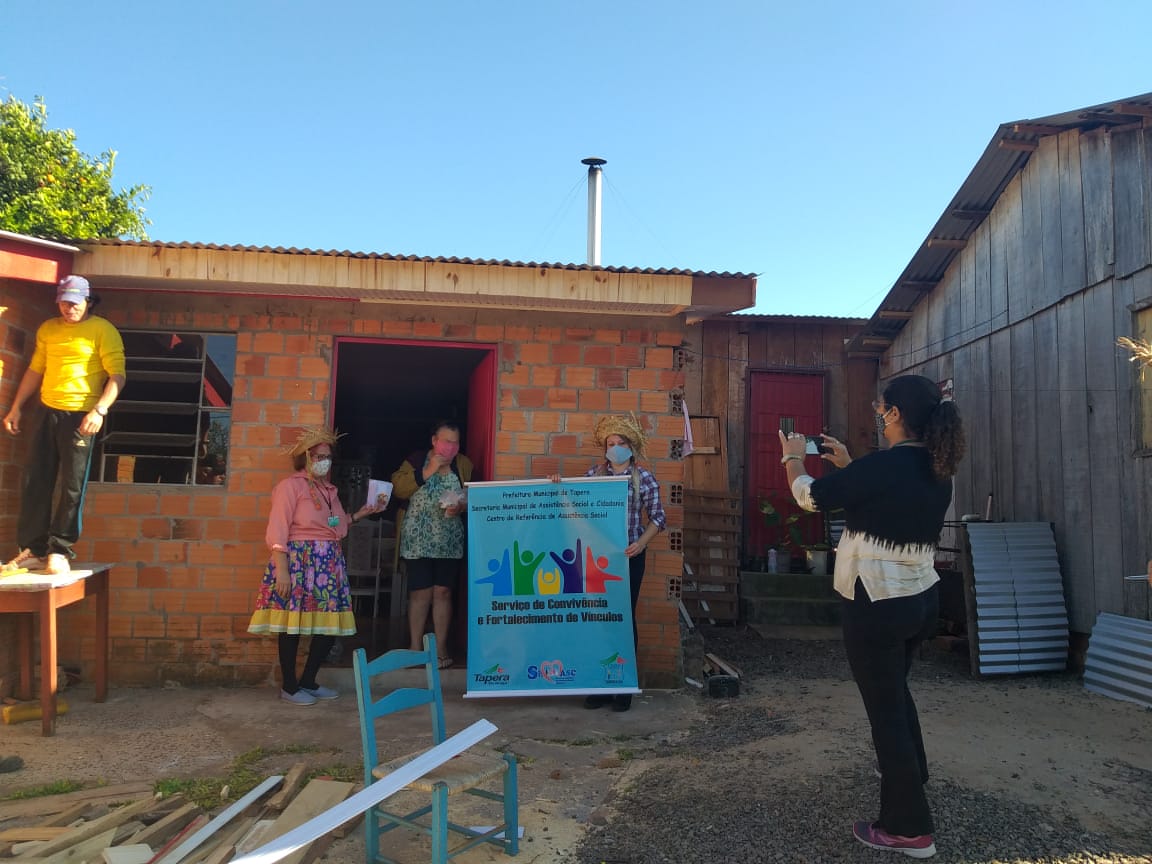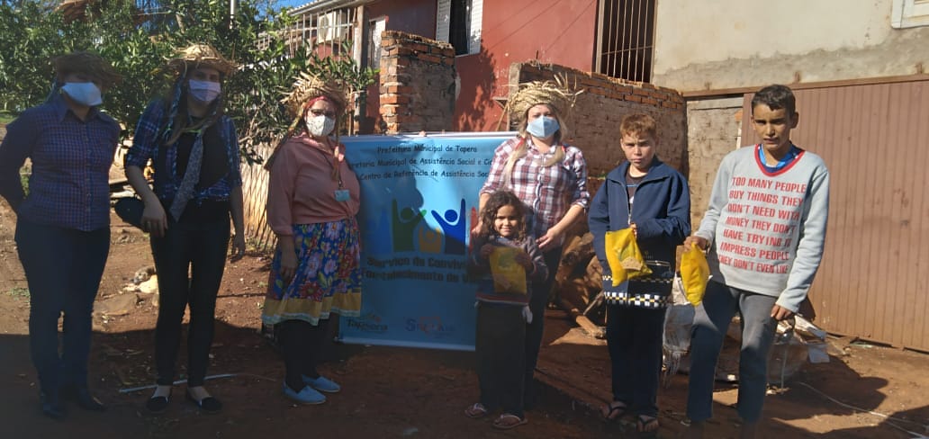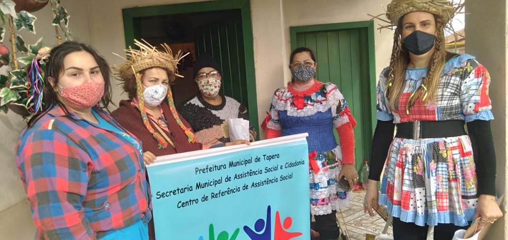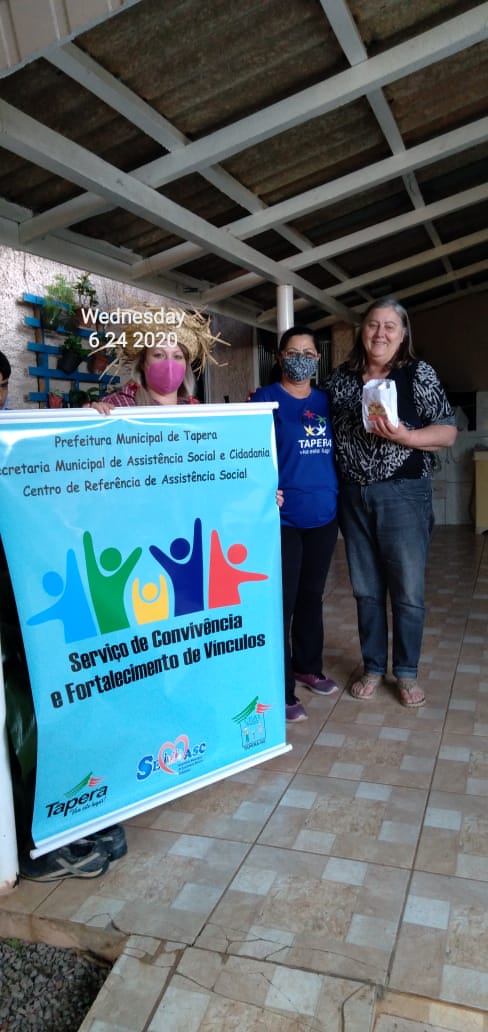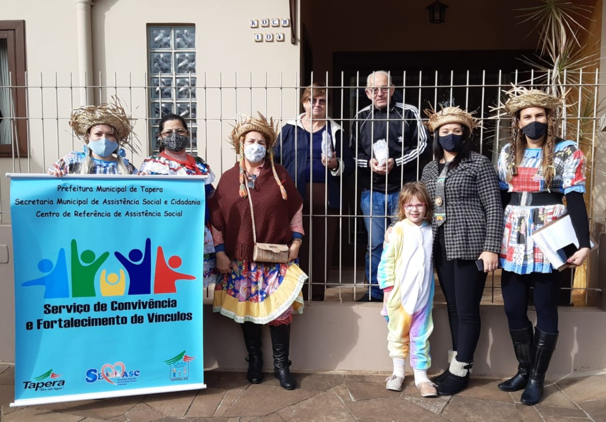 A Secretaria Municipal de Assistência Social e Cidadania, através do CRAS, desenvolveu atividades com os Grupos de Convivência e Fortalecimento de Vínculos - SCFV - com crianças, jovens e Grupos da 3 ° Idade, que receberam a tarefa de ornamentar ou enfeitar a casa com motivos de Festa Junina - São João. Todos os que participam deste Serviço receberam um carinho muito especial, um pacote com iguarias juninas produzidas no CRAS: pipoca, cri cri, grustoli e batata doce assada.