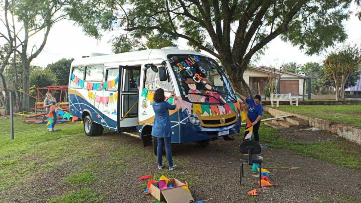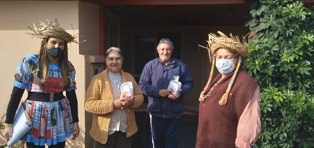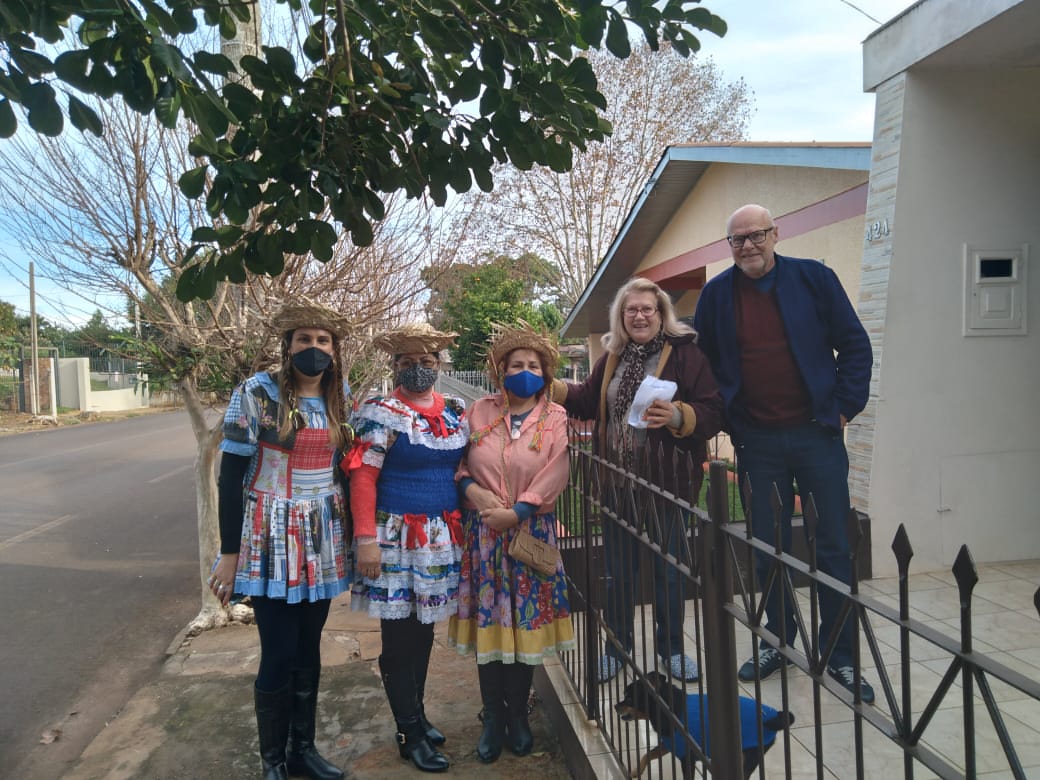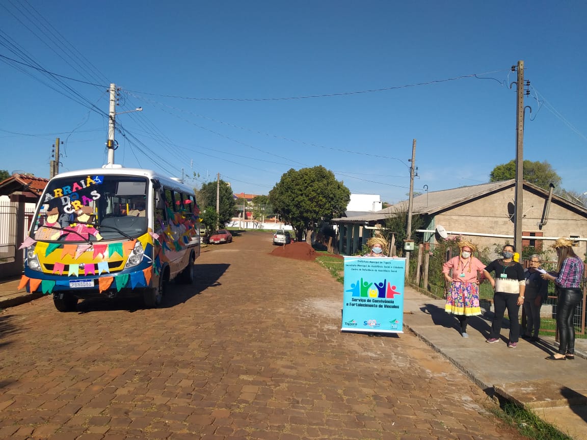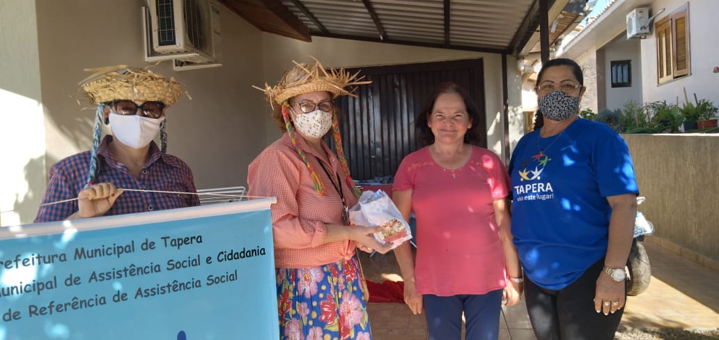 Para as crianças e jovens, os familiares retiraram no CRAS e os grupos da 3° Idade recebem em casa, com uma surpresa: a equipe do CRAS com o ônibus todo enfeitado, levaram de casa em casa o pacote com as iguarias. Tudo com muita alegria, música e carinho para os vovôs e vovós. A Primeira Dama do Município Marilei Borghetti Kuhn participou da atividade.