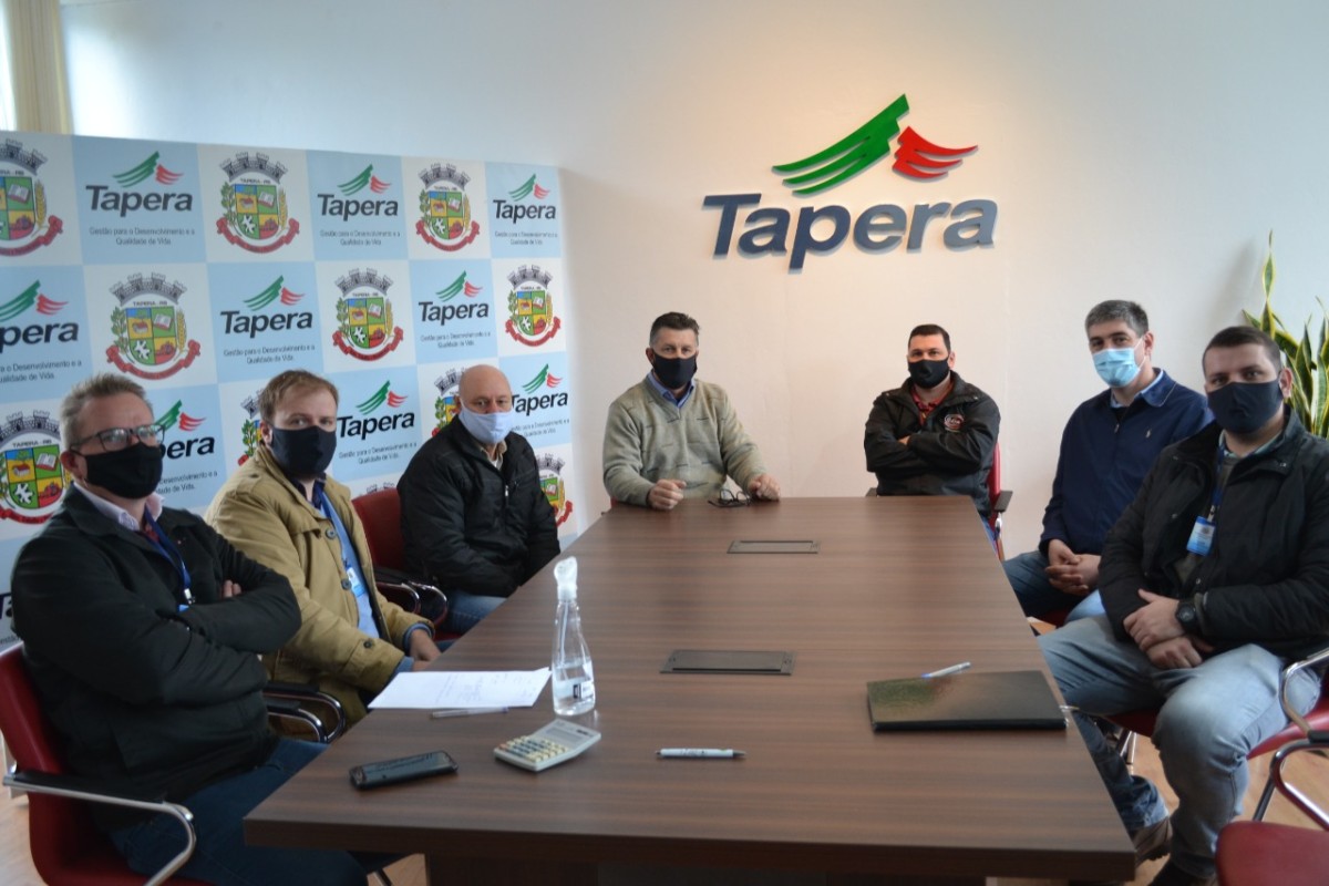 Nesta quinta-feira (01/07), o Gerente de Produção Charles Stefanello e o Responsável pela Expansão Ronaldo Muchinski, do Grupo Vibra Agroindustrial, estiveram visitando a Prefeitura Municipal, ocasião em que explanaram ao Prefeito Volmar Kuhn, Vice-Prefeito Jorge Quadros, Secretário do Desenvolvimento Luiz Guilherme Roethig, Secretário da Administração Stéfano Simon e Diretor Jurídico Henrique Oppelt a respeito das intenções de investimentos da empresa na região, que recentemente adquiriu um frigorífico de aves em Soledade.