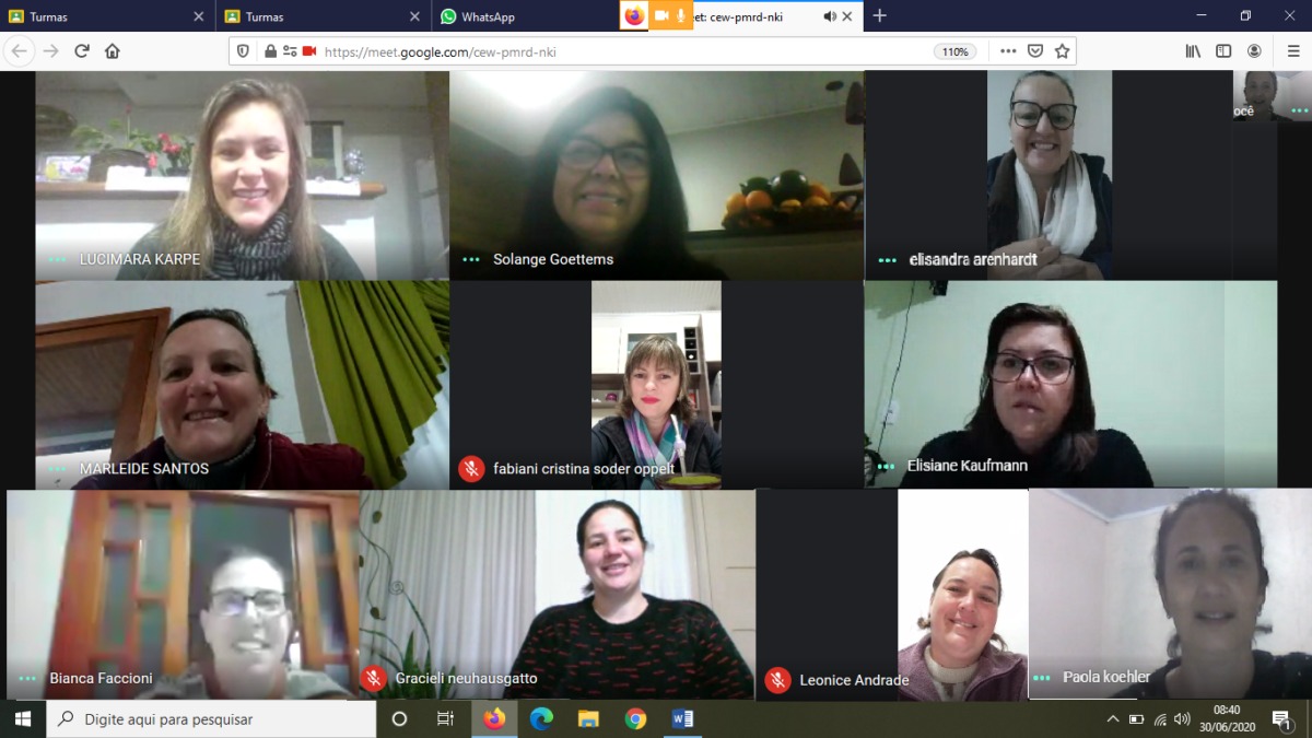 Foram iniciados na terça-feira, 30/06, os encontros virtuais do ciclo de reuniões com todos os professores da Rede Municipal de Ensino, que tem como objetivo acompanhar o trabalho que está sendo desenvolvido por cada professor, ouvindo as dificuldades e realizações. O ciclo também pretende promover trocas de experiências visando alinhar o trabalho da rede e ao mesmo tempo ouvir sobre as dificuldades que as famílias tem tido para acompanhar as atividades dos alunos.