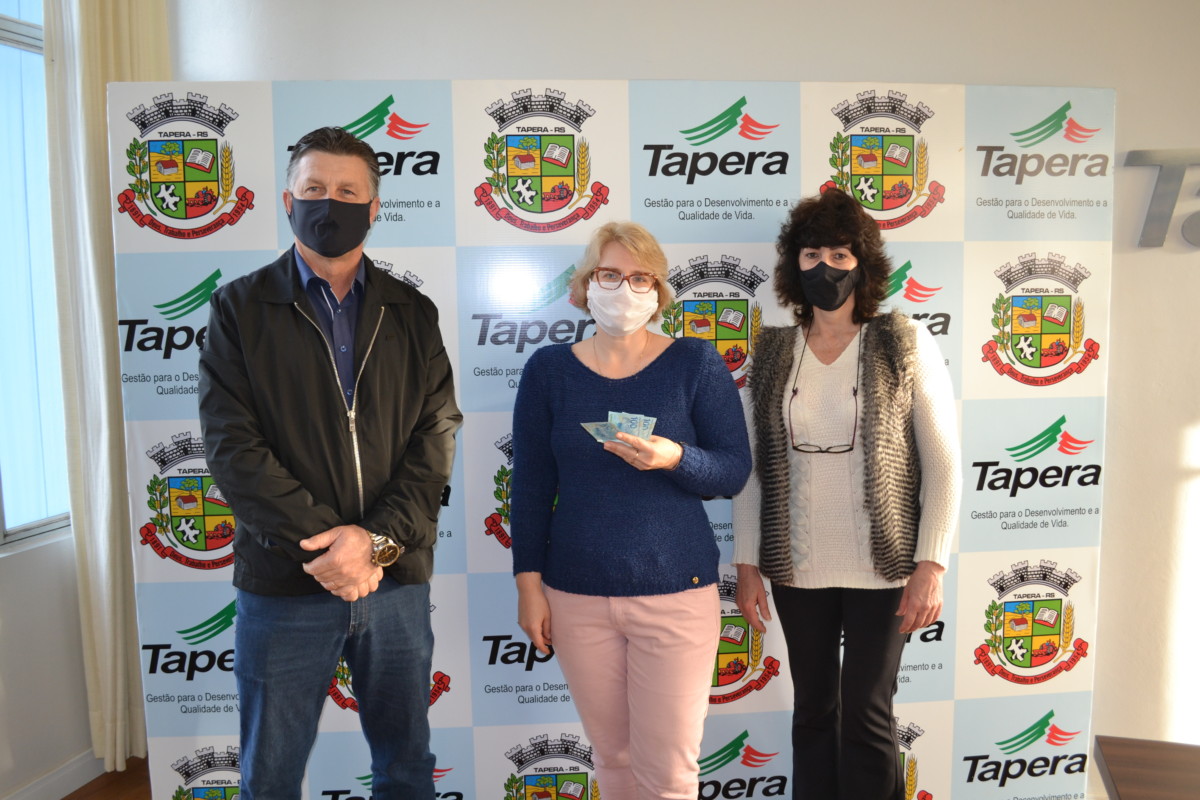 Foram entregues na manhã desta sexta-feira, 24/07, os prêmios da Nota Fiscal Gaúcha, do mês de março/2020, sorteio realizado no dia 13 de julho. Keila Lisiane Bohn e Marlene Neves receberam a premiação das mãos da Secretária de Fazenda e Planejamento Claudete Terezinha Bervian, na presença do Prefeito Municipal Volmar Kuhn, do Vice-Prefeito Jorge Quadros e da Fiscal Tributária Franciele Pastório.