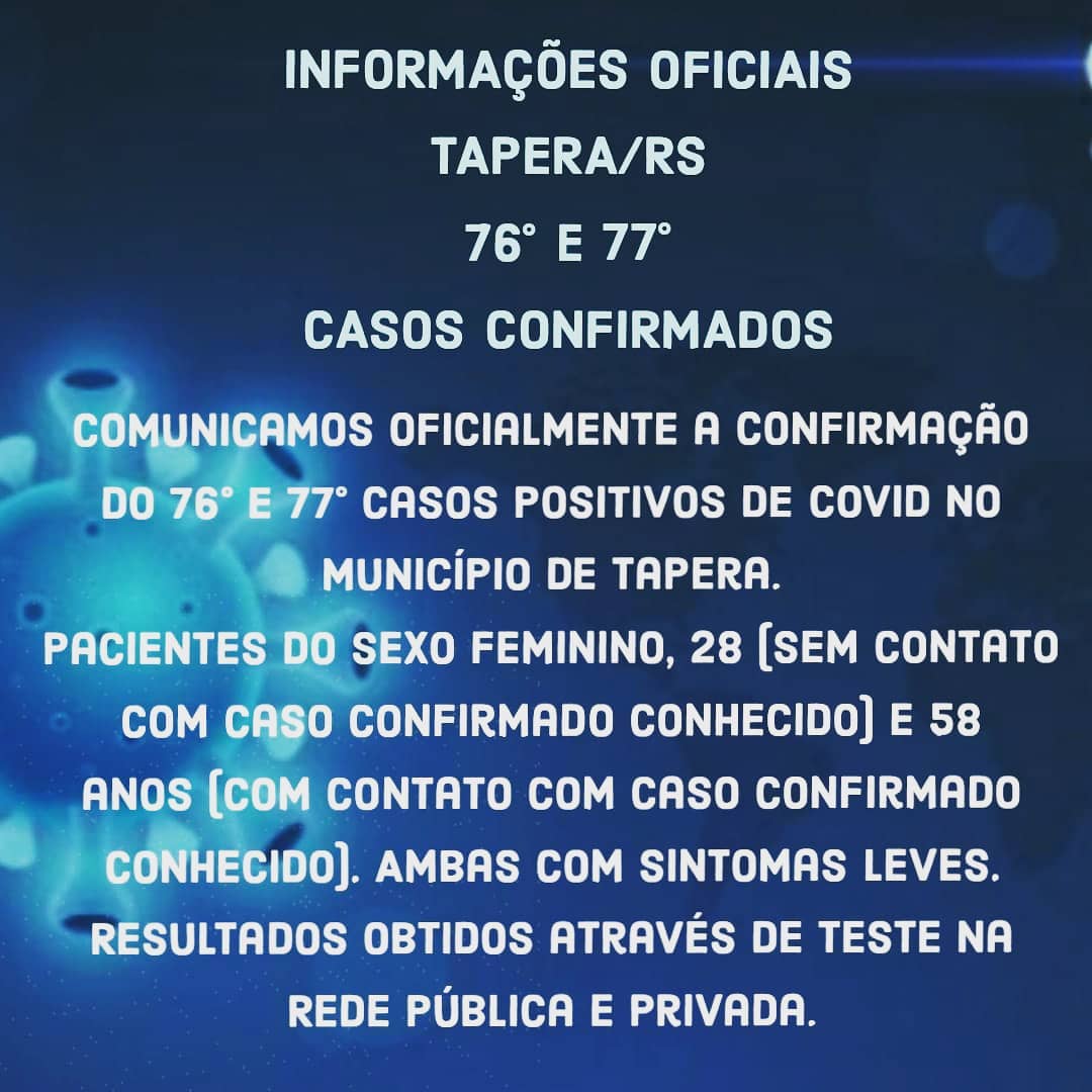 Tapera confirma 77º caso de Covid 19Tapera confirma 77º caso de Covid 19