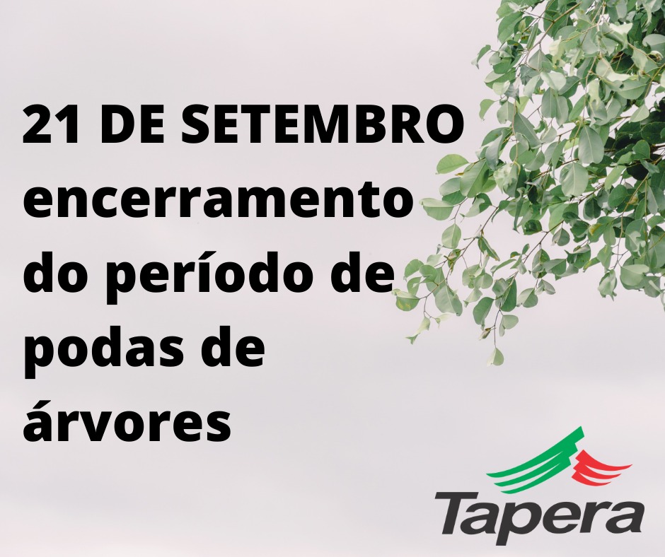O Departamento Municipal de Agronegócio e Meio Ambiente informa que em 21 de setembro encerra-se o período de realização de podas de árvores. No dia 21 de setembro é comemorado o Dia Mundial da Árvore, data em que se inicia a primavera. Após este período, somente serão emitidas licenças para realização de podas em casos emergenciais ou em casos de construção civil. Lembrando que o período ideal para podas de árvores e plantio de mudas é entre os meses de maio a setembro.