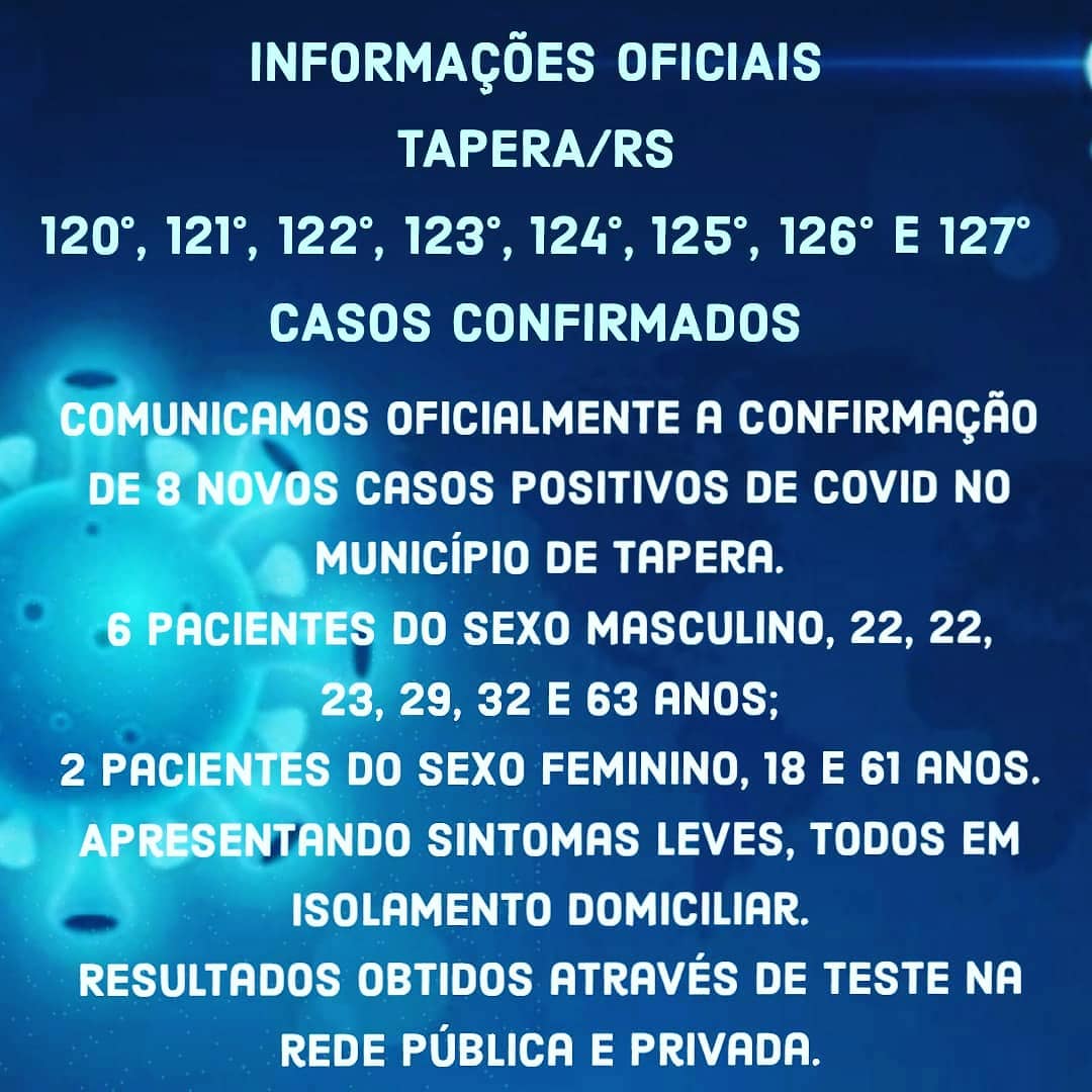 Mais 8 casos de Covid 19 confirmados no municipioMais 8 casos de Covid 19 confirmados no municipio