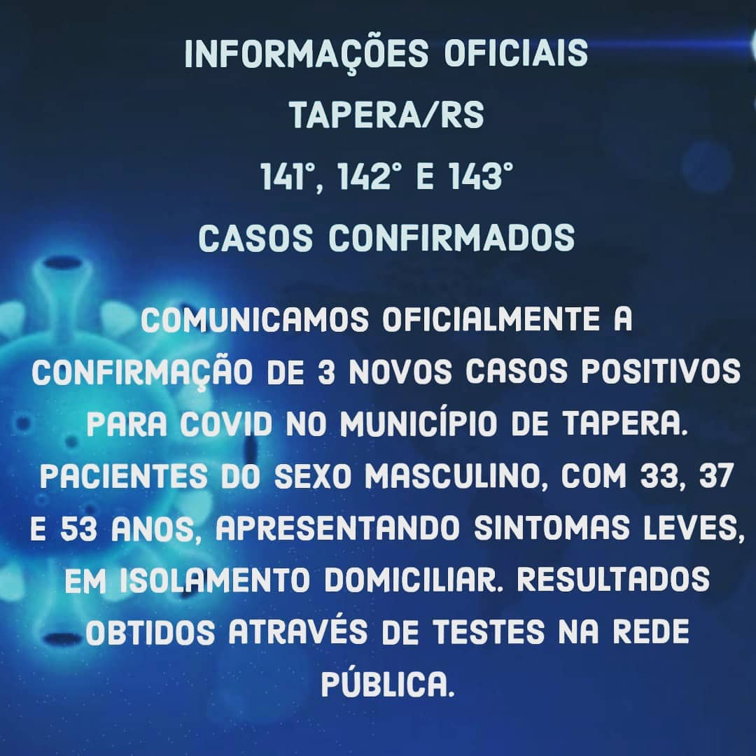 Tapera chega a 146 casos de Covid 19Tapera chega a 146 casos de Covid 19