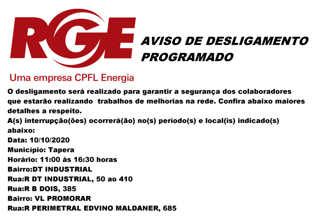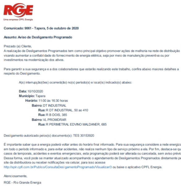 CPFL. Aviso de desligamento de energia.CPFL. Aviso de desligamento de energia.