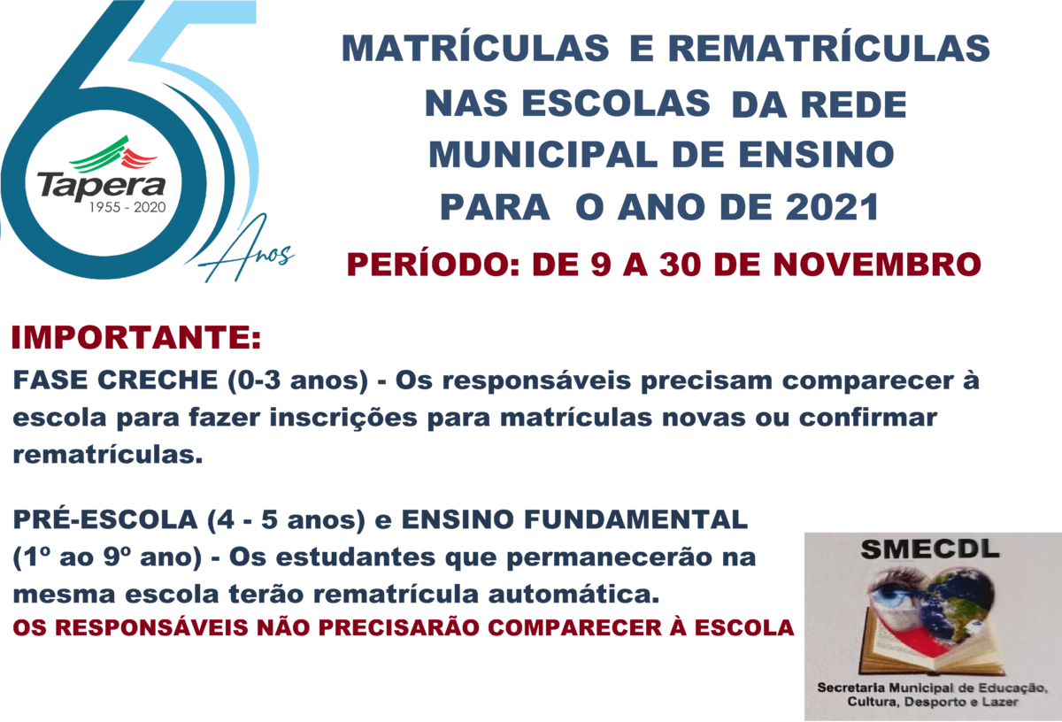 Matrículas e rematrículas nas escola da Rede Municipal de EnsinoMatrículas e rematrículas nas escola da Rede Municipal de Ensino