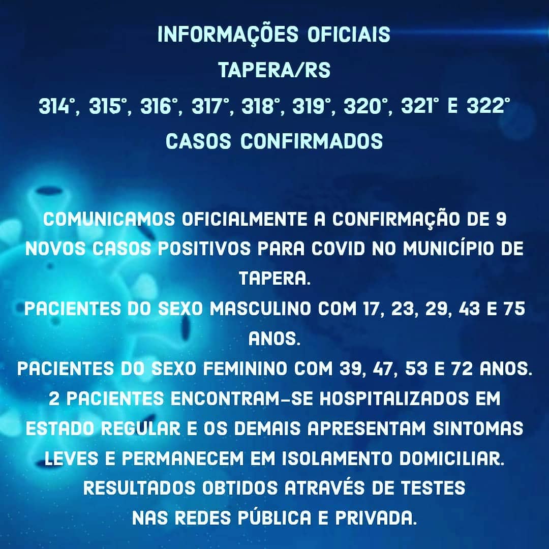 322 casos de Covid 19 já foram confirmados em Tapera322 casos de Covid 19 já foram confirmados em Tapera