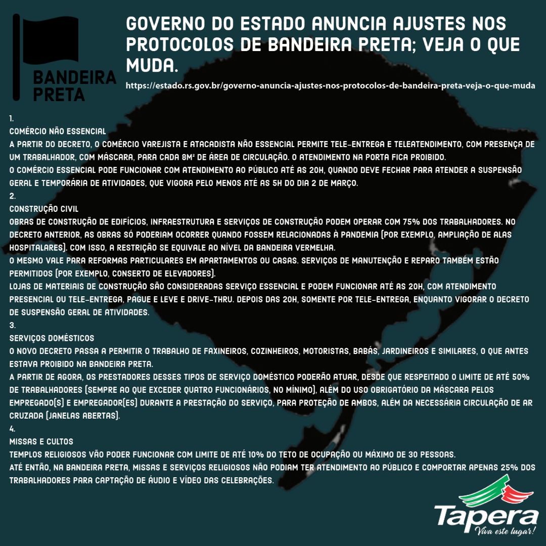 GOVERNO DO ESTADO ANUNCIA AJUSTES NOS PROTOCOLOS DA BANDEIRA PRETAGOVERNO DO ESTADO ANUNCIA AJUSTES NOS PROTOCOLOS DA BANDEIRA PRETA