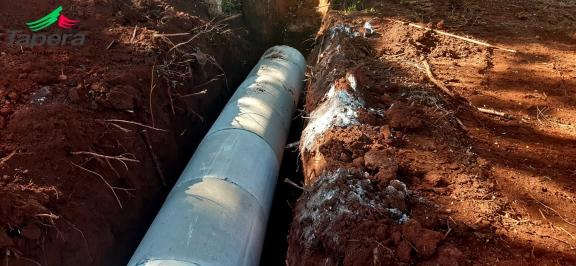 A Administração Municipal, através da Secretaria de Obras, realizou nesta semana a colocação de tubos na Avenida XV de novembro, saída para Lagoa dos Três Cantos. A obra busca o melhoramento do escoamento de água das chuvas.