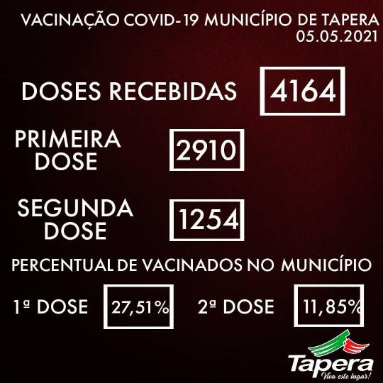 Confira o número de doses recebidas e a porcentagem da população taperense vacinada.