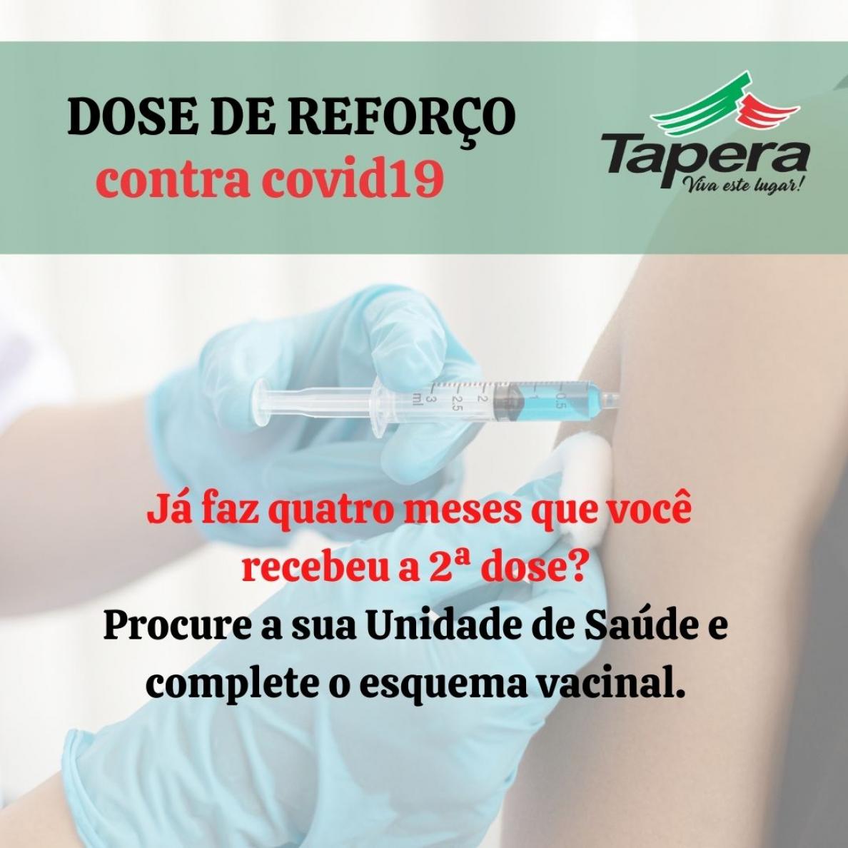 As Unidades Básicas de Saúde já estão a aplicando a dose reforço da vacina contra covid19. Após quatro meses da aplicação da 2ª dose, o cidadão deve procurar as UBS para completar o esquema vacinal.