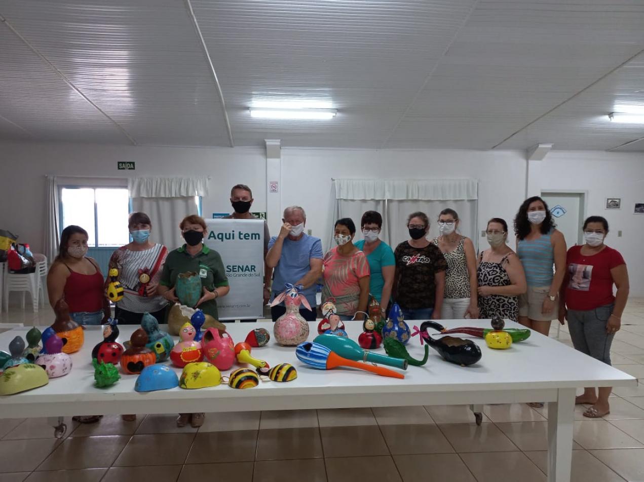 O encerramento do curso de Artesanato em Porongo aconteceu na quinta-feira à tarde, 20/01, e contou com a presença do vice-prefeito Osvaldo Henrich Filho, presidente do Sindicato Rural de Tapera e Selbach, Nereo Egberto Stärlick, participantes e equipe da Secretaria Municipal de Assistência Social e Cidadania.