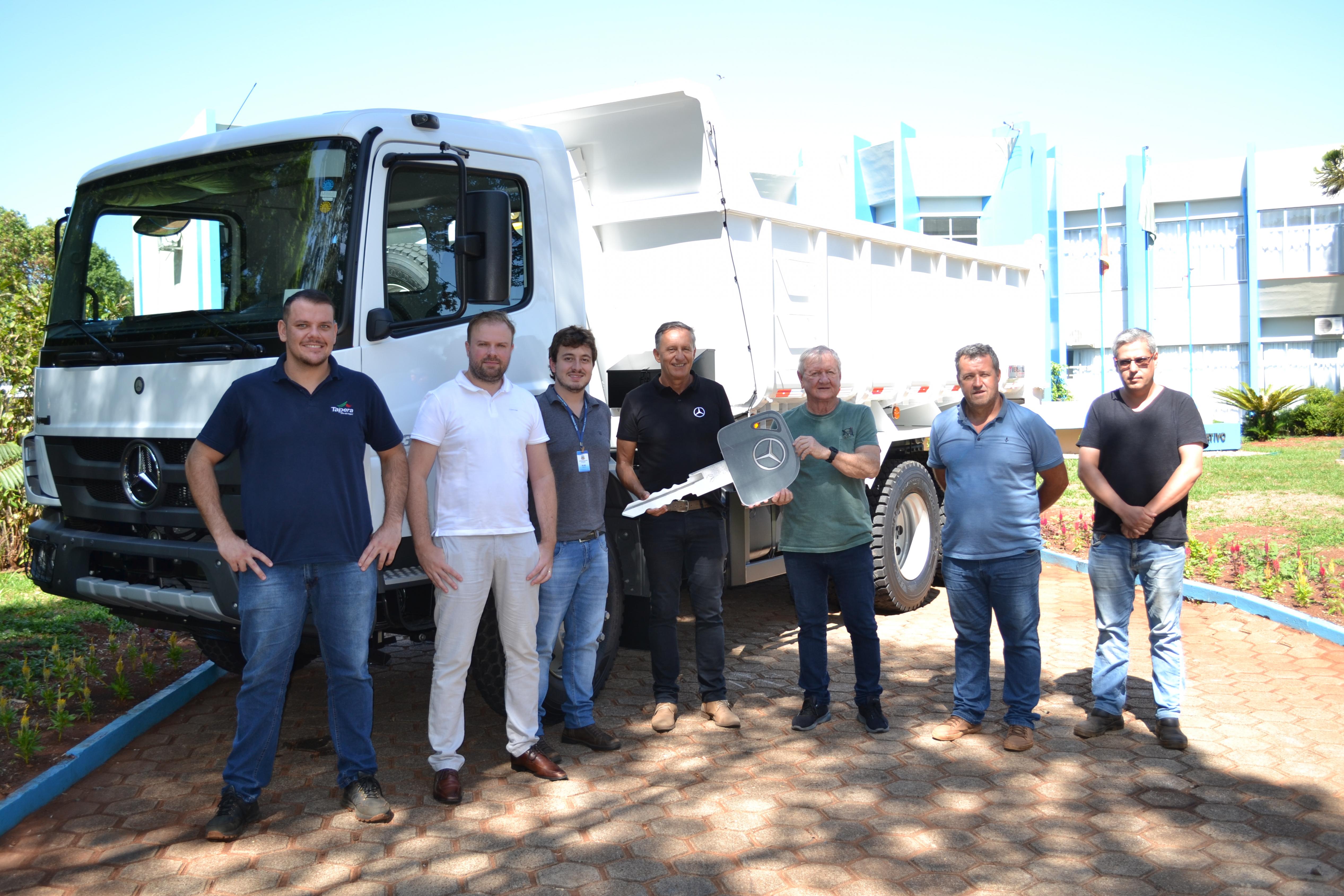 A Administração Municipal adquiriu um caminhão caçamba Mercedes Benz, modelo Atego 2730K. O veículo foi entregue na manhã desta terça-feira, 01/02, ao prefeito em exercício Osvaldo Henrich Filho.